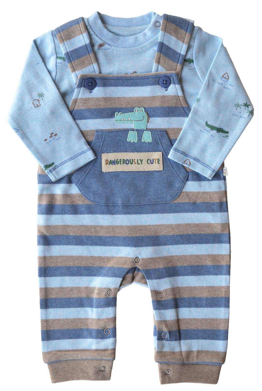 Baby's Full Romper set with T-Shirt,Color-Stripes/Blue