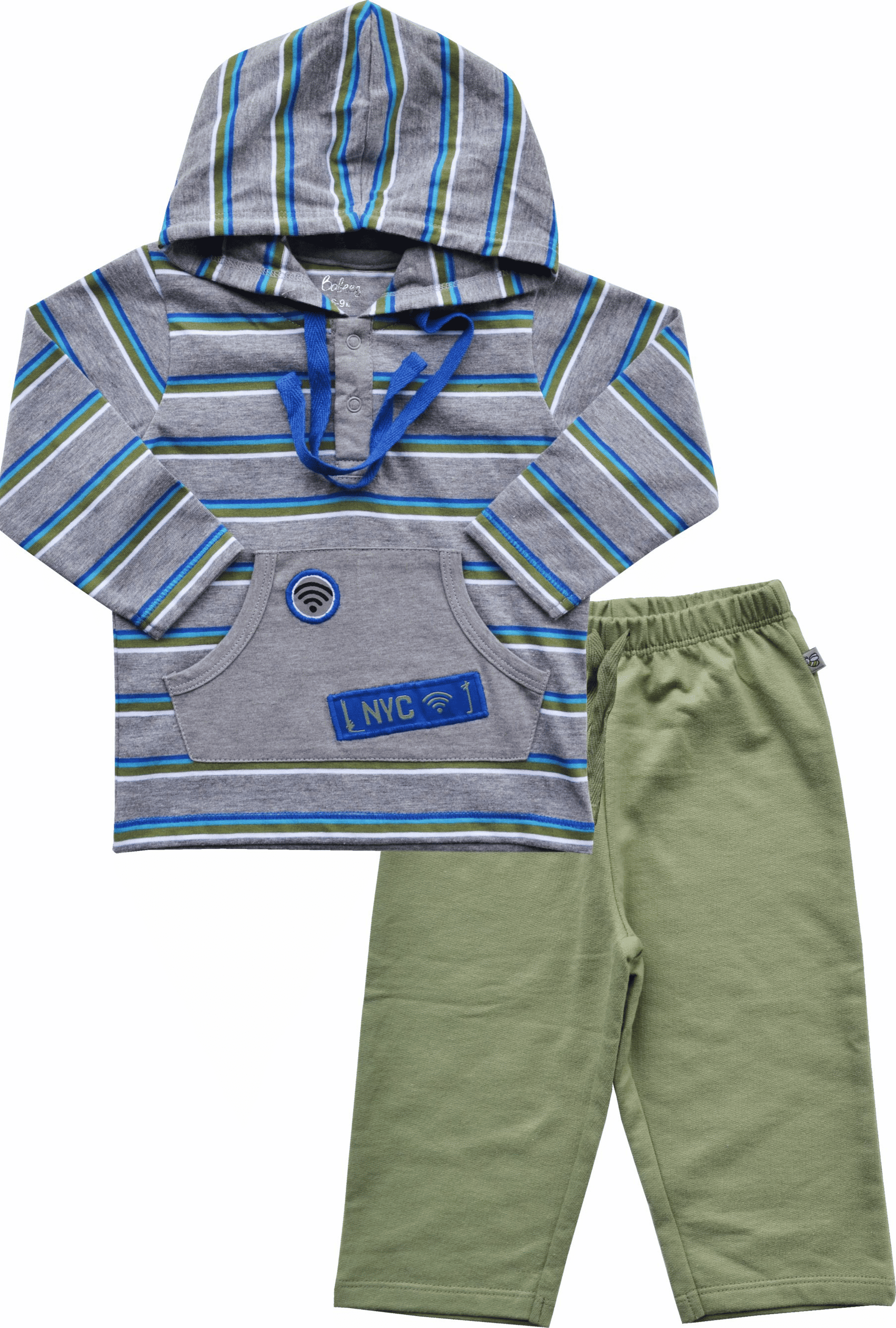 Baby Boys T-Shirt+Pant Set with hood,Color-Grey/Green
