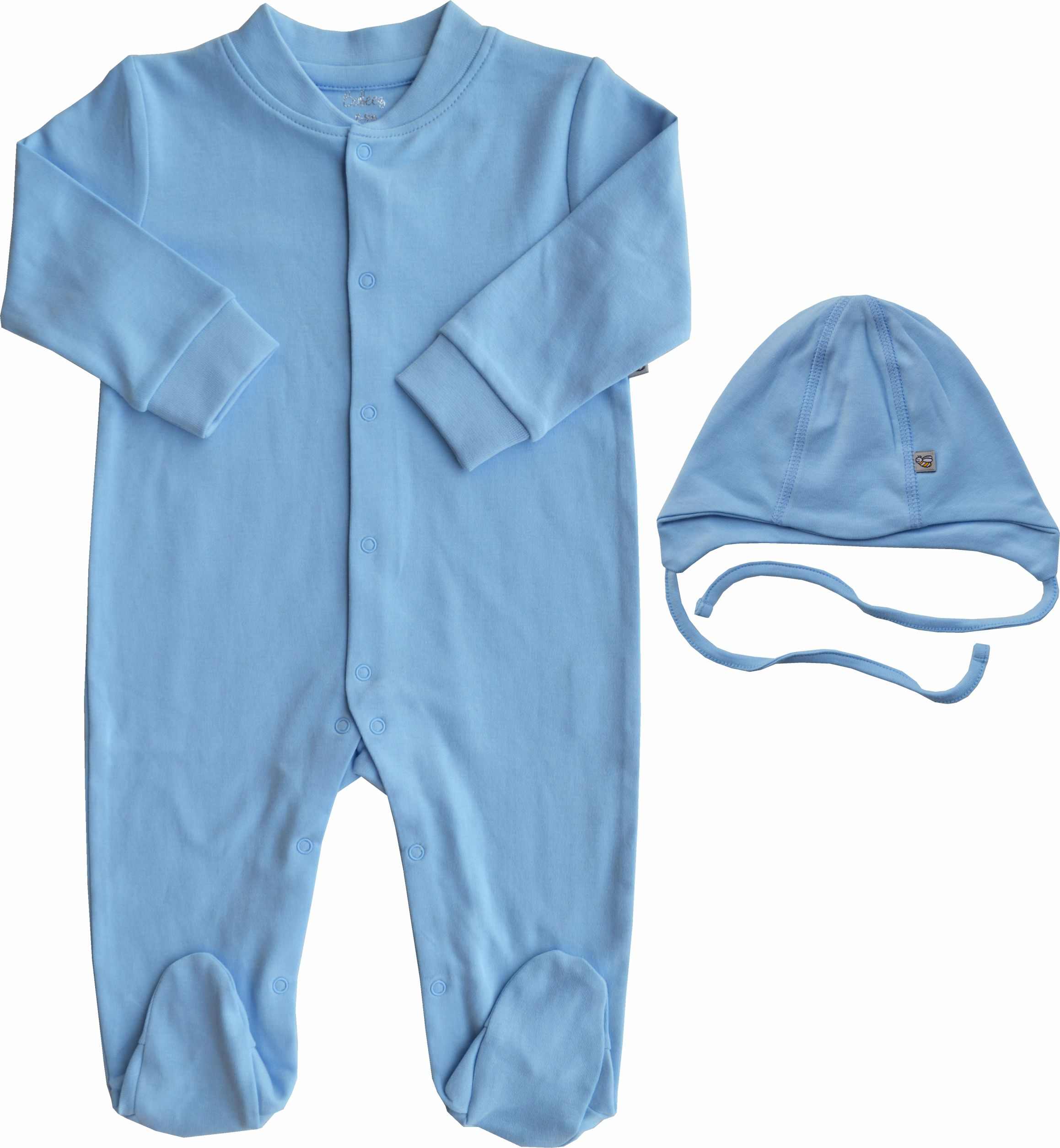 Blue Sleeper/Full Romper with feet+Cap Set (100% Cotton)