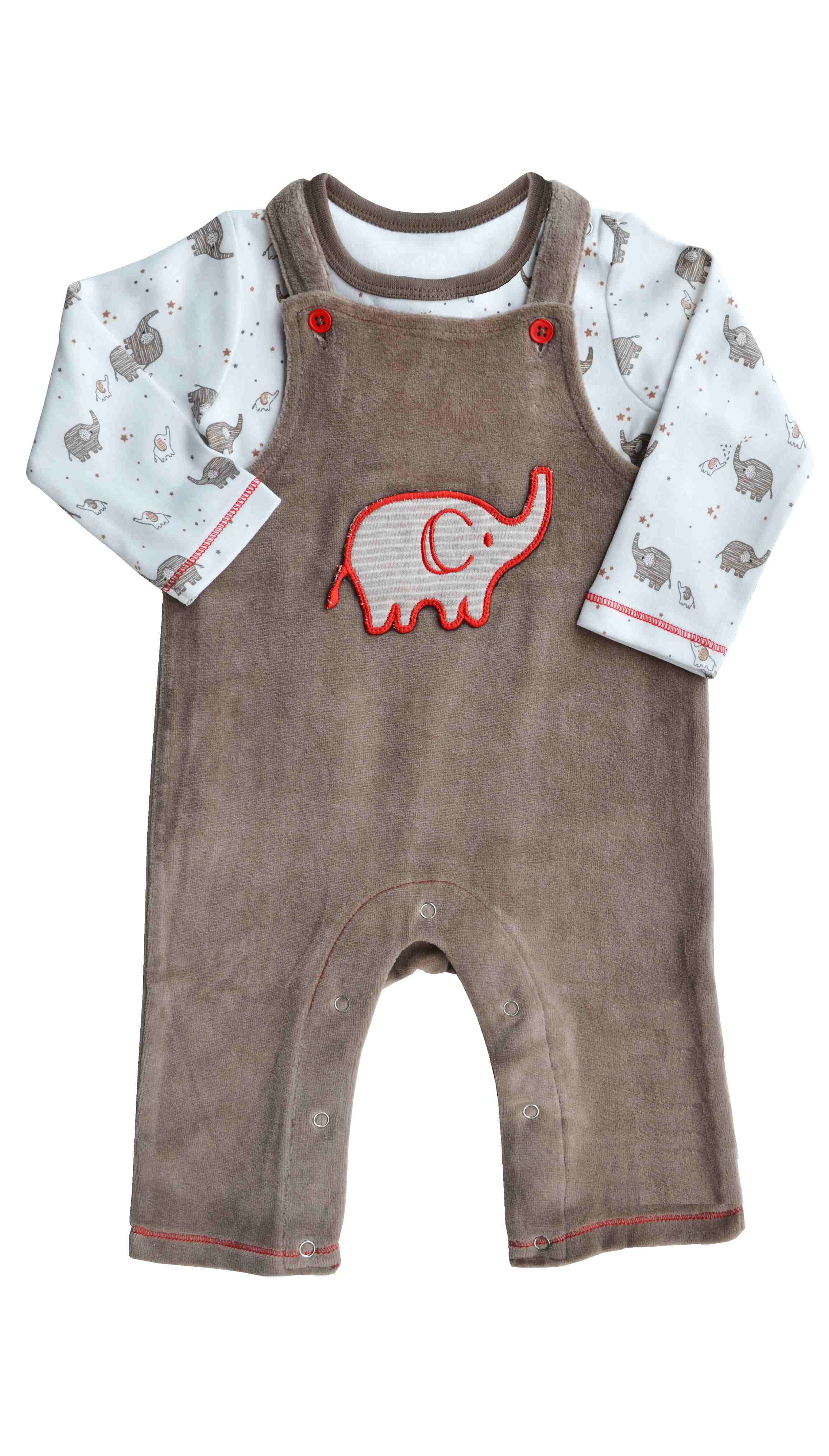 All Over Elephant Print T-Shirt With Brown Romper Set