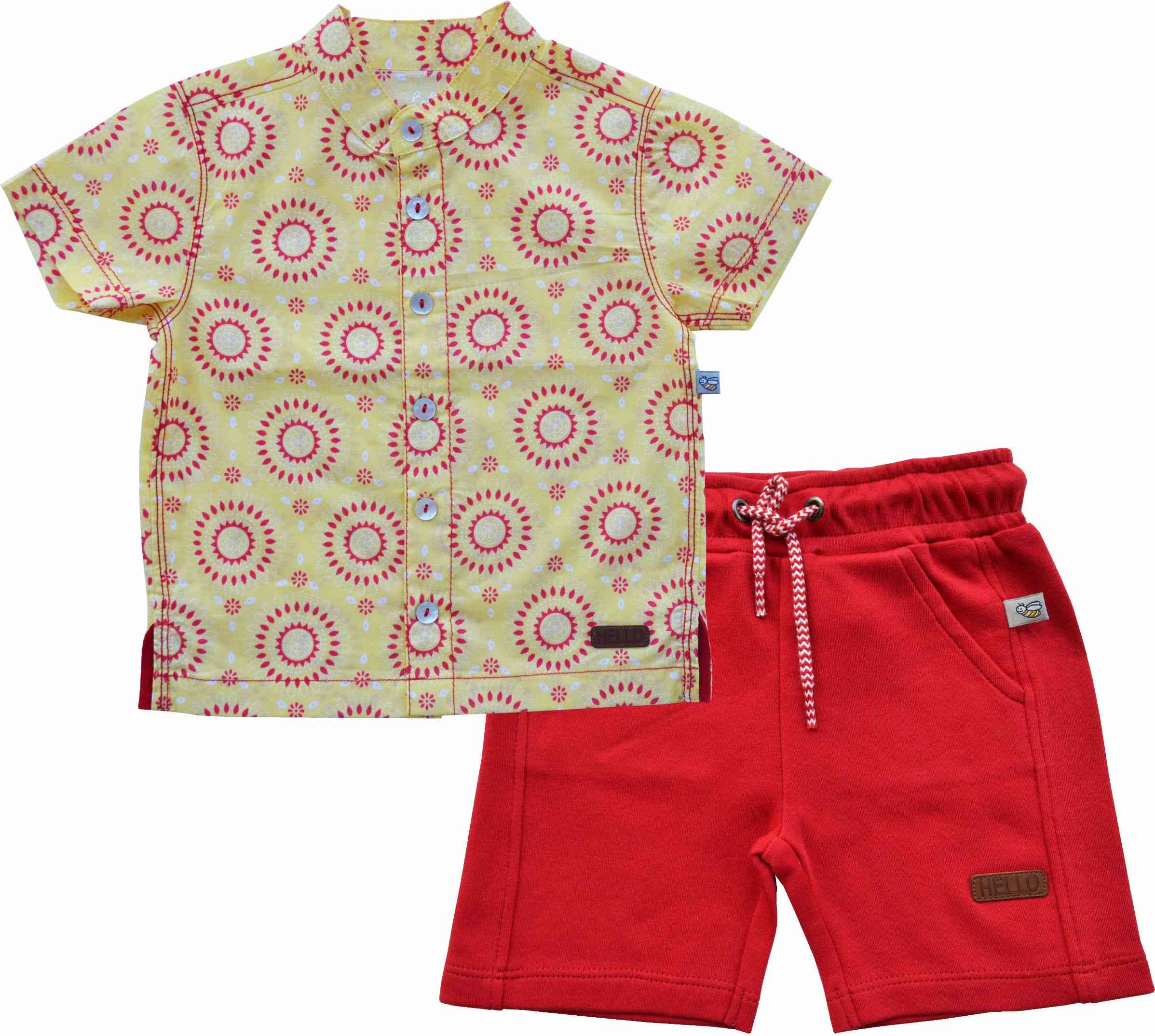 Baby Boys Kurta Shirt+Shorts Set,Color-Yellow/Red