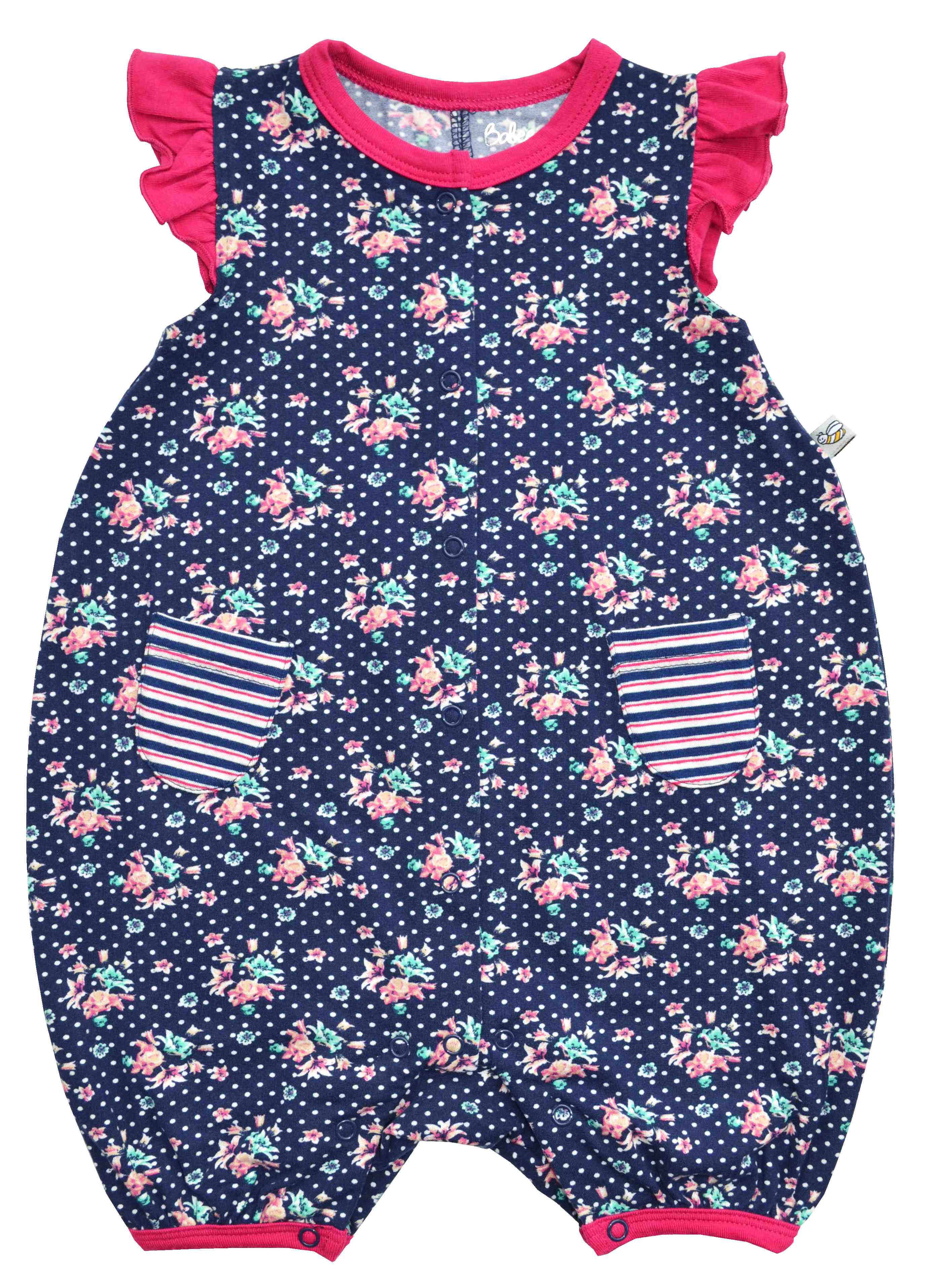 Allover Flower Print Navy Sleeveless Short Romper