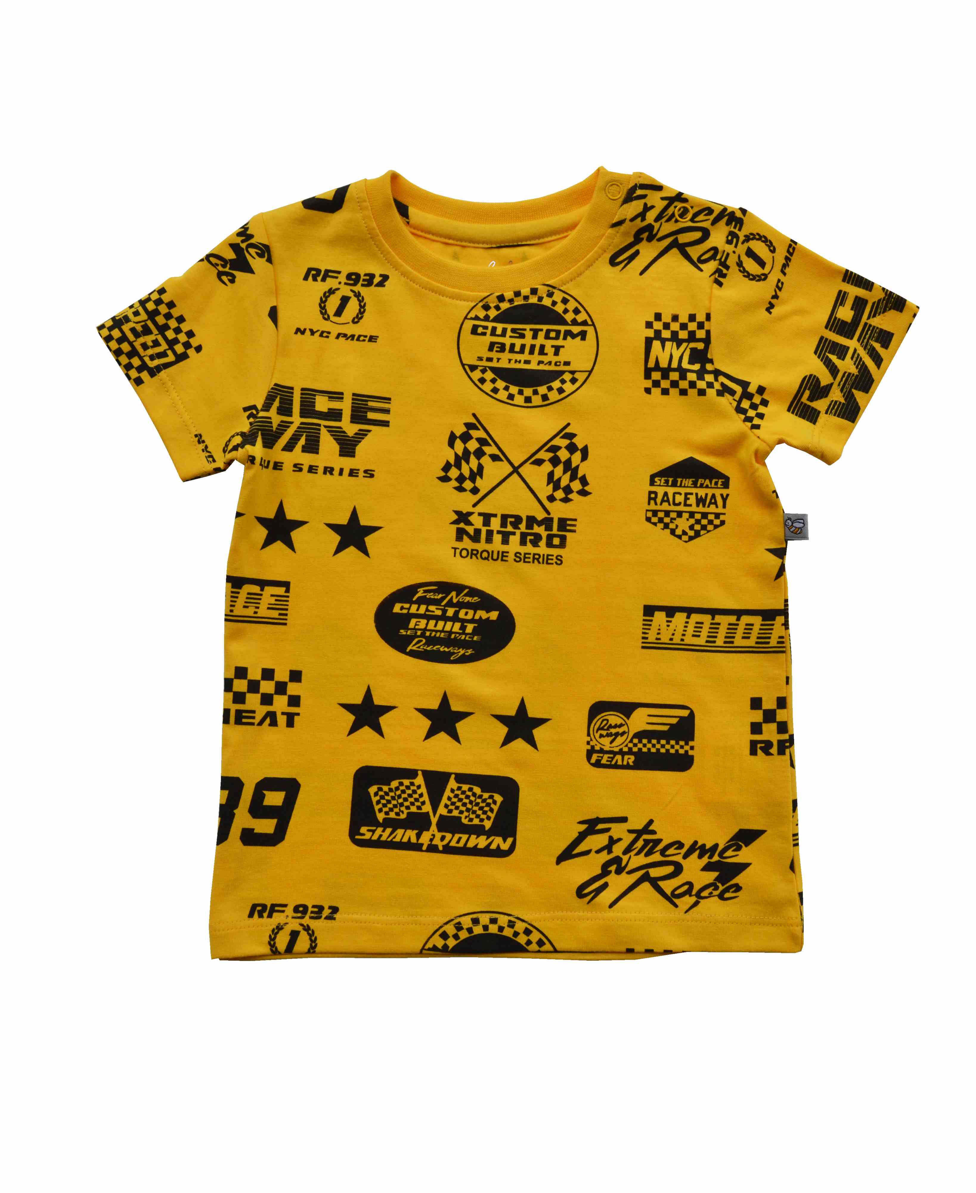 Allover RACE Print on Yellow Short Sleeve T-Shirt