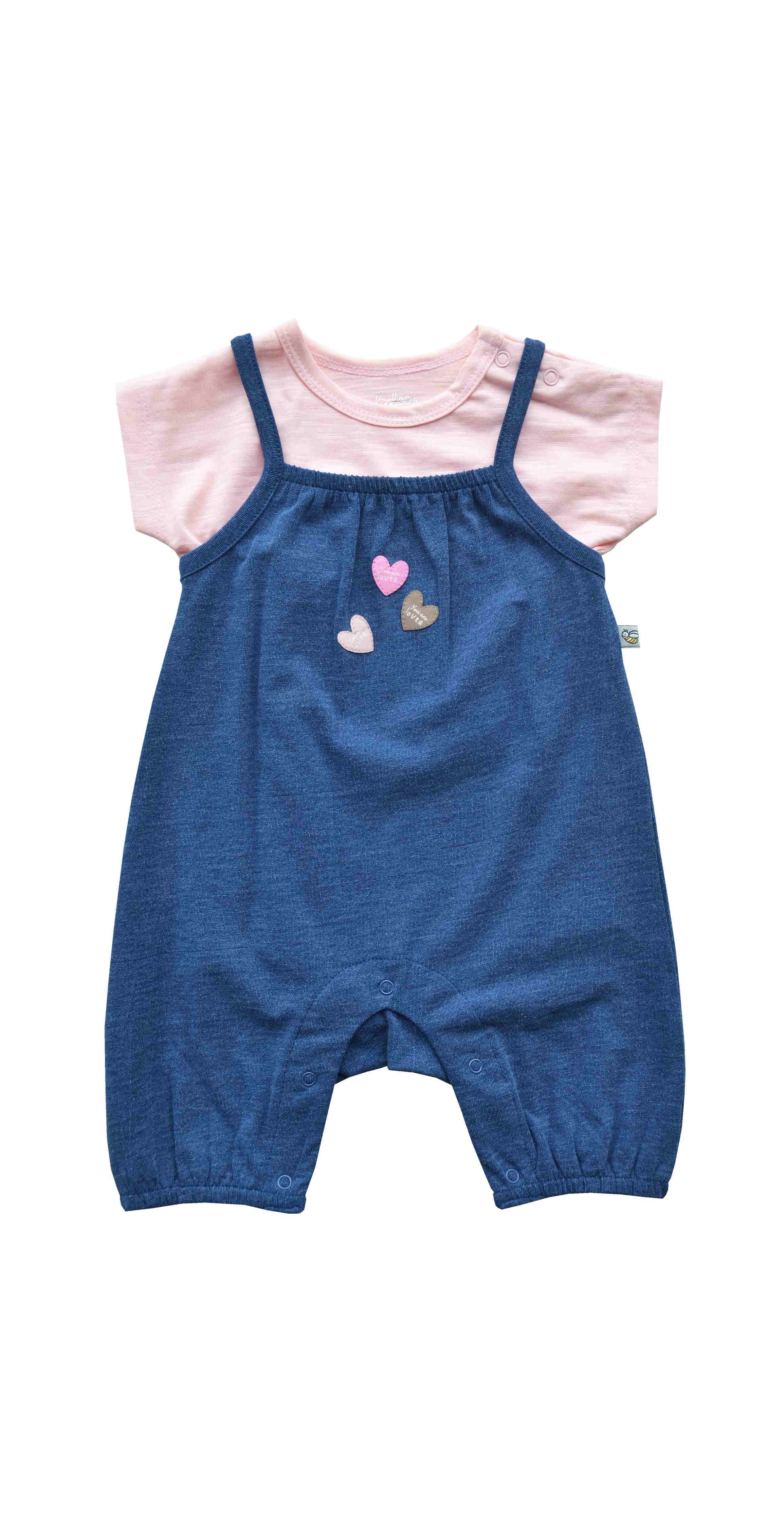 Baby Girl Denim Romper with Applique and Pink T-Shirt(95% Cotton 5% Elasthan)