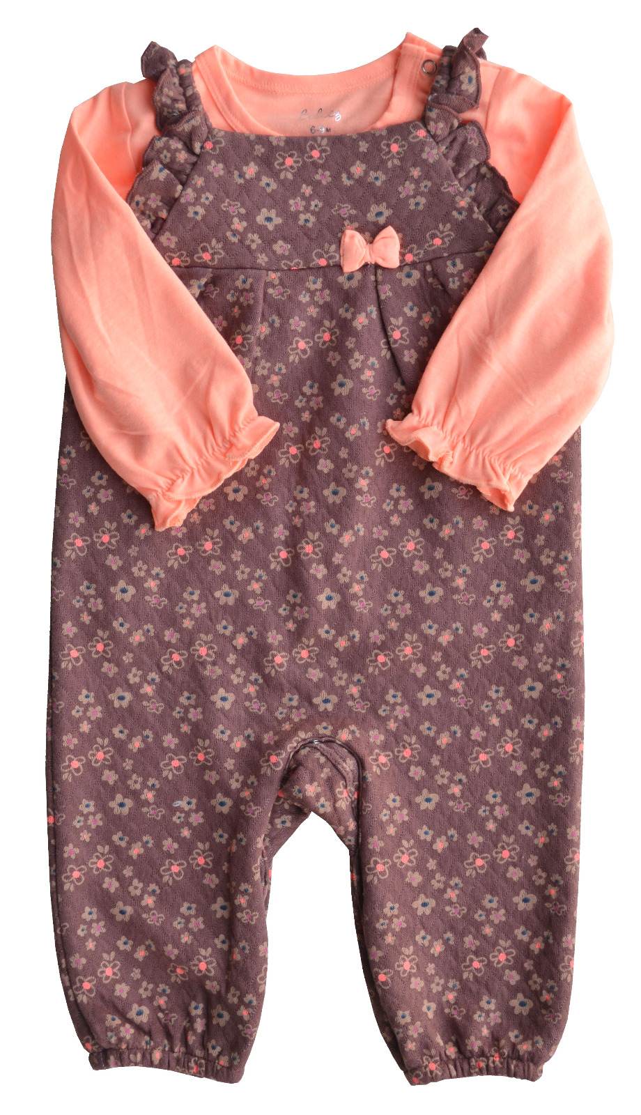 Baby Girls Long Romper Set,Color-Brown/Orange