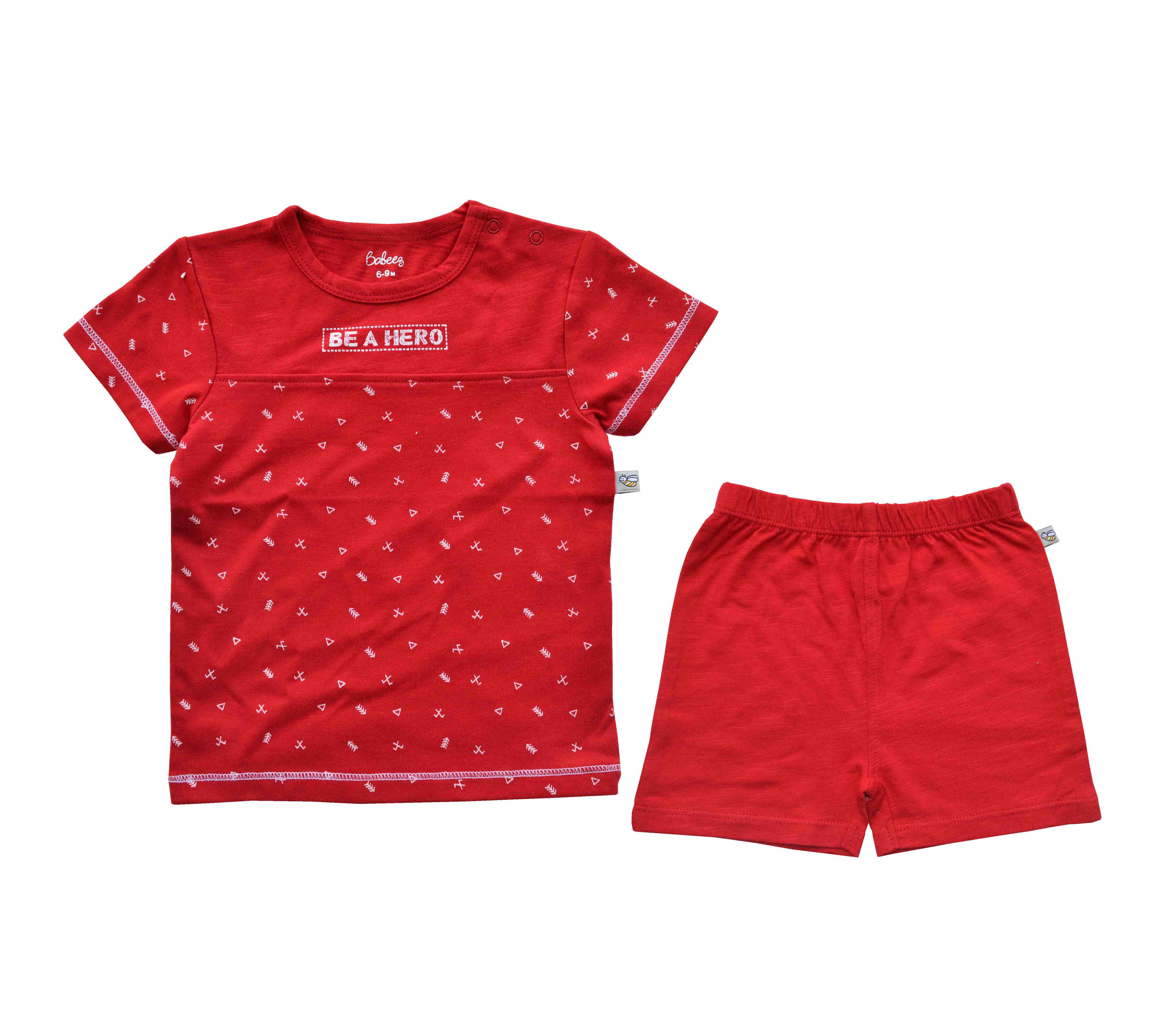 Be a Hero Print on Red T-Shirt + Red Shorty Set
