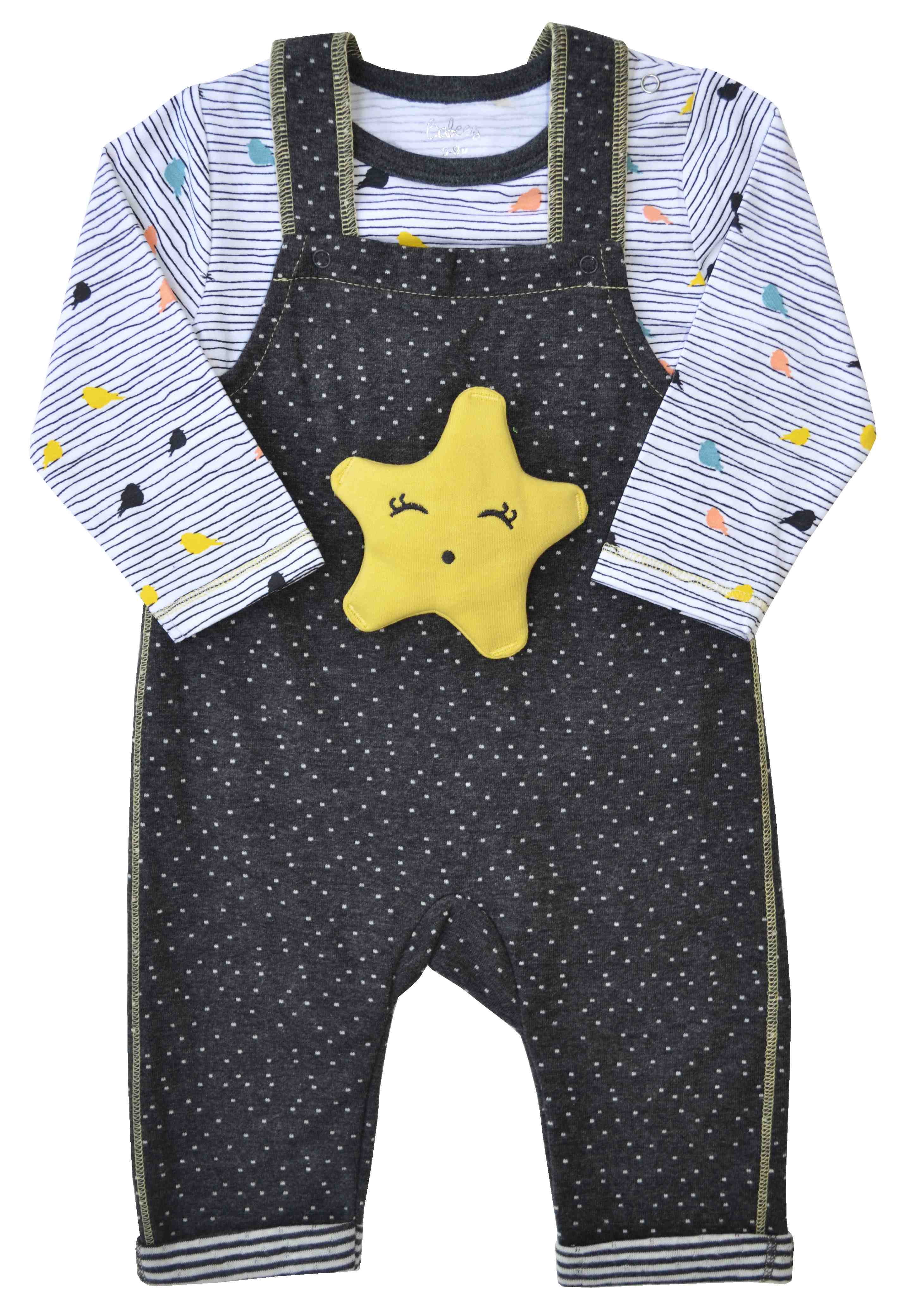 Bird Print T-Shirt With Grey Star Print Romper Set