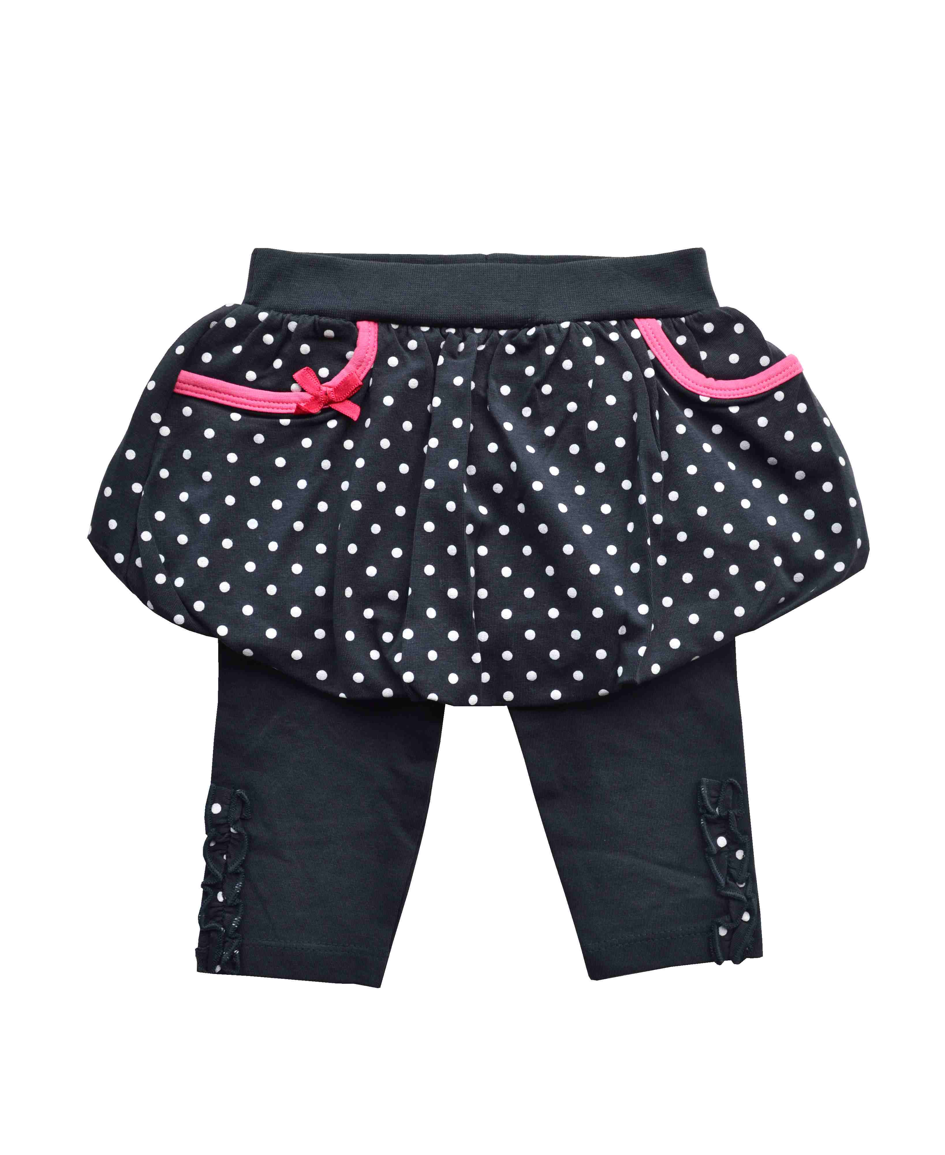 Black Allover Dots Print Skirts With 3/4 Leggings