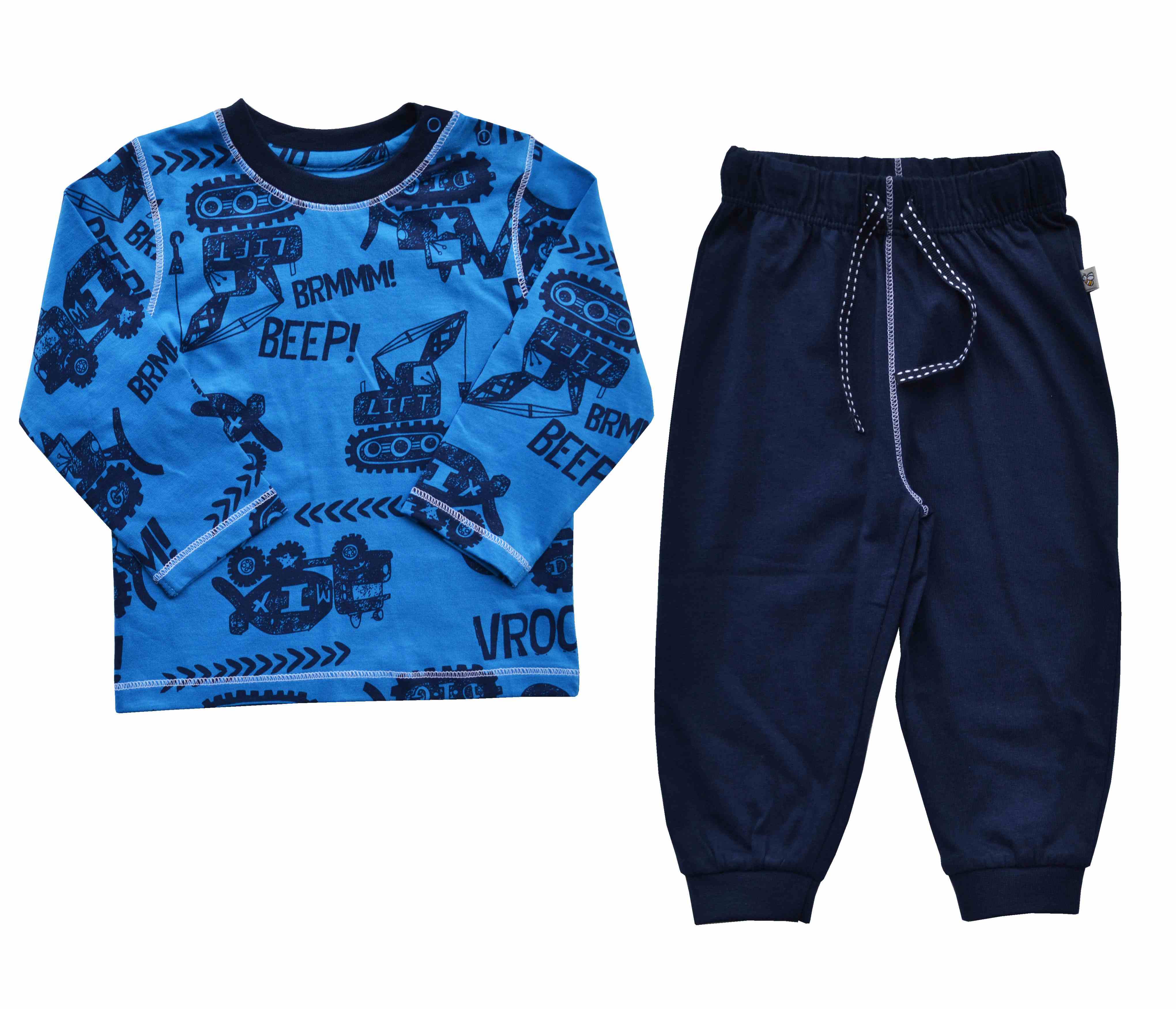 Blue Car Print T-Shirt + Navy Long Pant Set