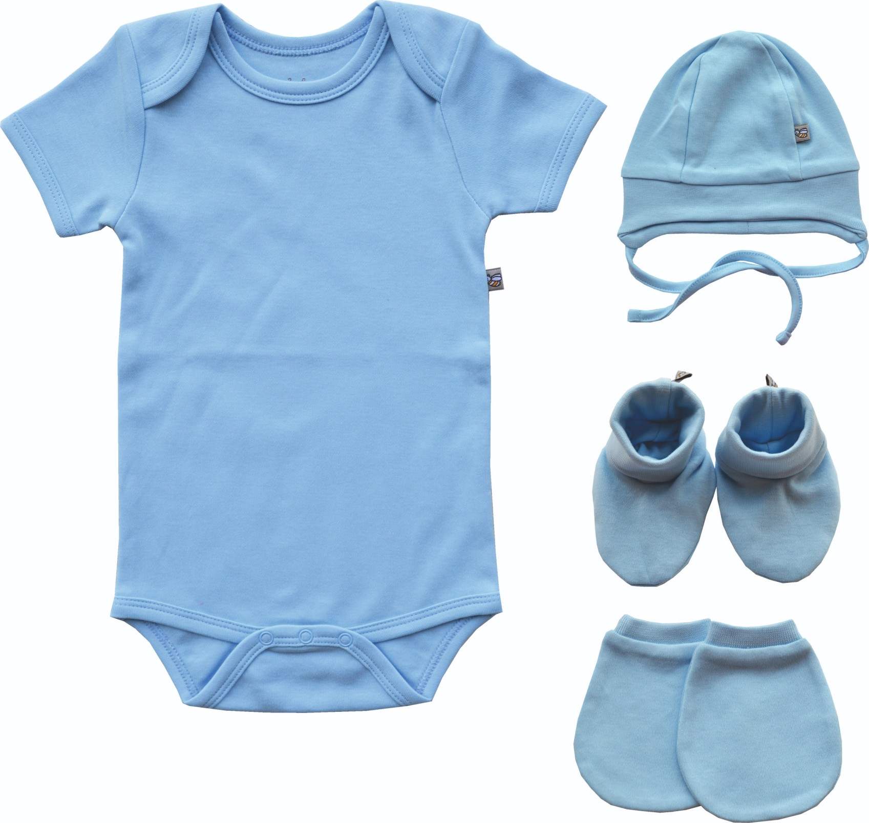 Baby Blue Romper/Onesie+Cap+Bootie Mitten Set