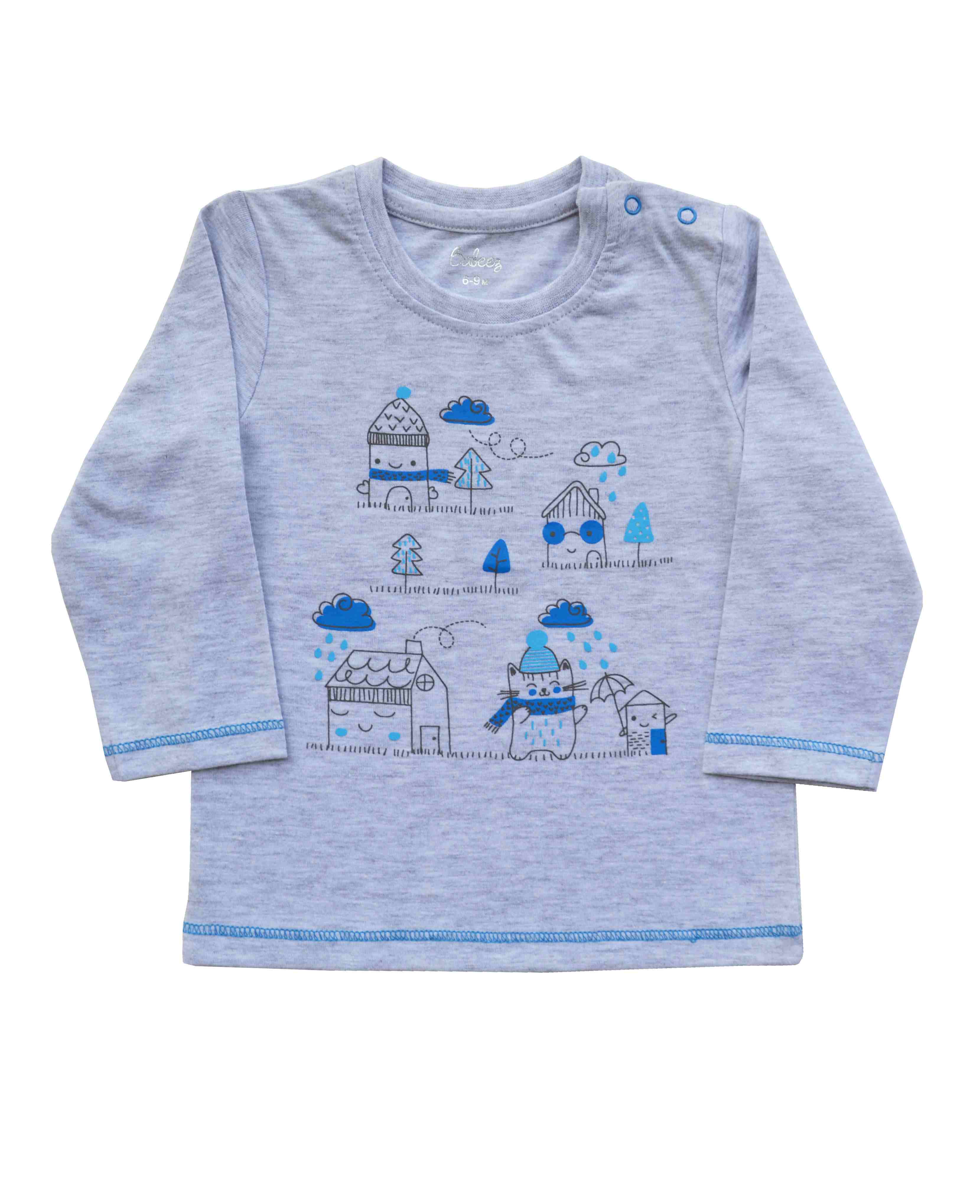 Baby T-Shirt with Full Sleeves,Color-Grey/Blue