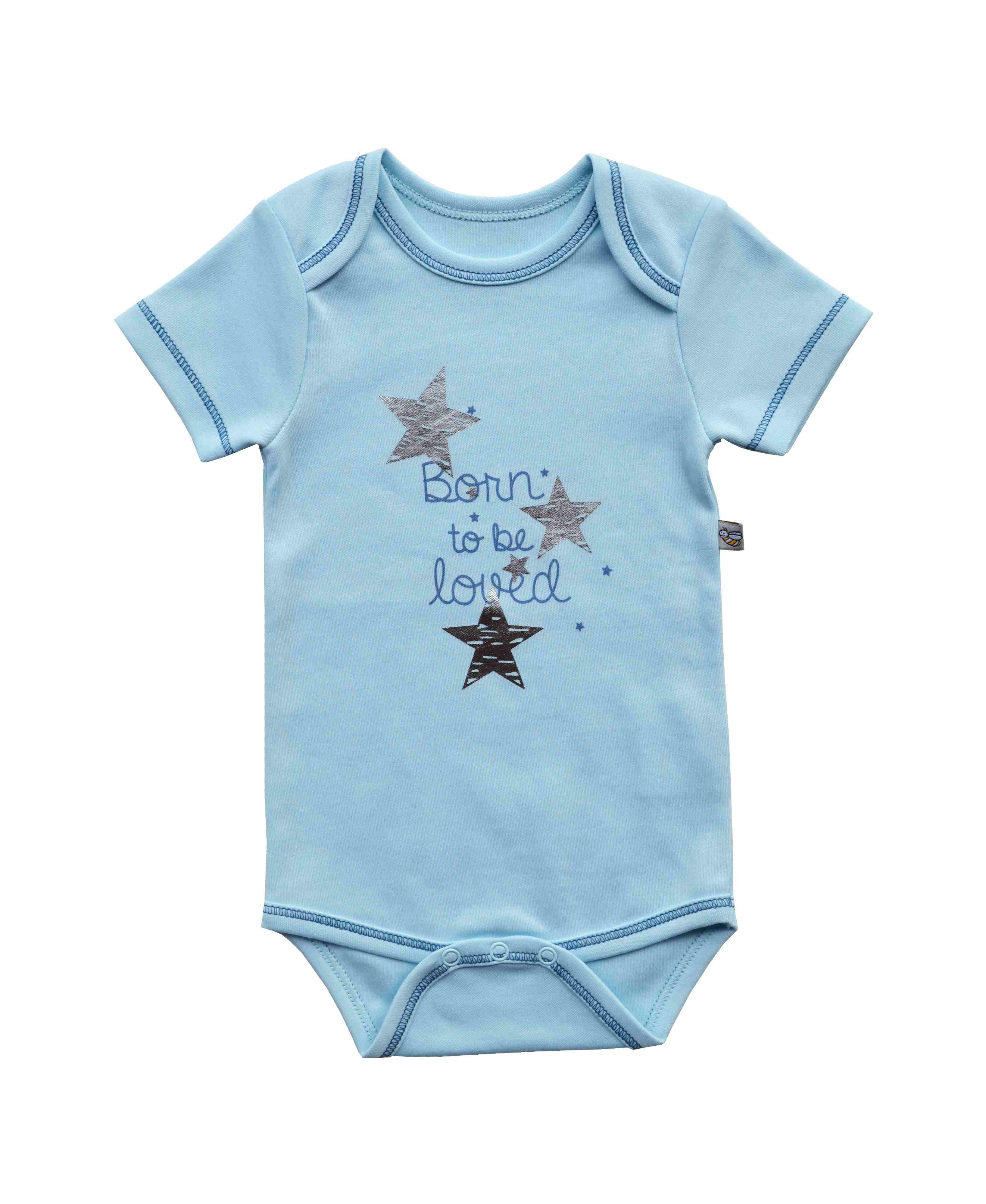 Born To Be Loved Print On Blue Baby Romper/Onesie