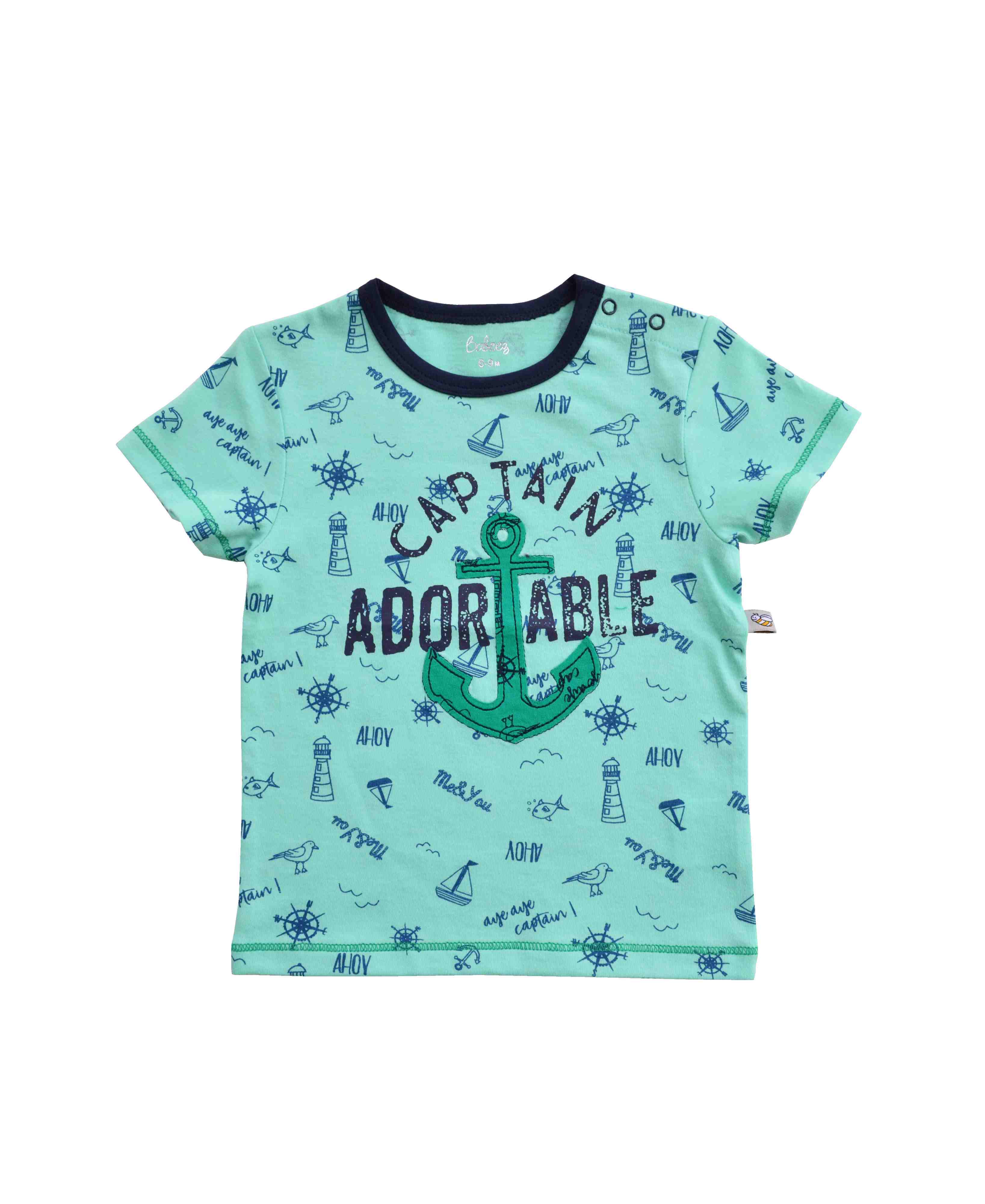 Captain Adorable Print on Lt.Green T-Shirt (100% Cotton Single Jersey)