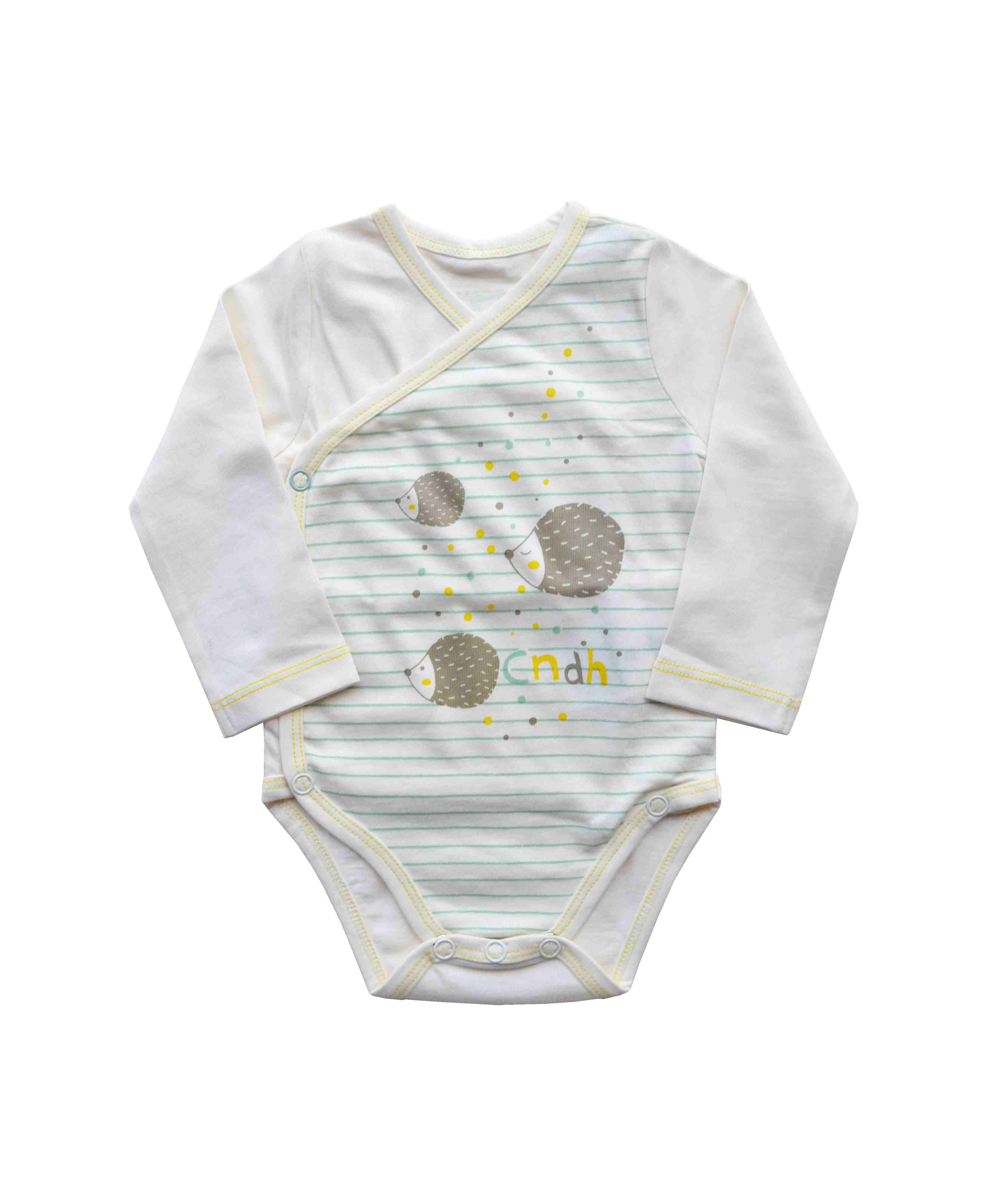 Cream Long Sleeve Romper/Onesie with Porcupine and Stripe Print on Oneside (100% Cotton Single Jersey)