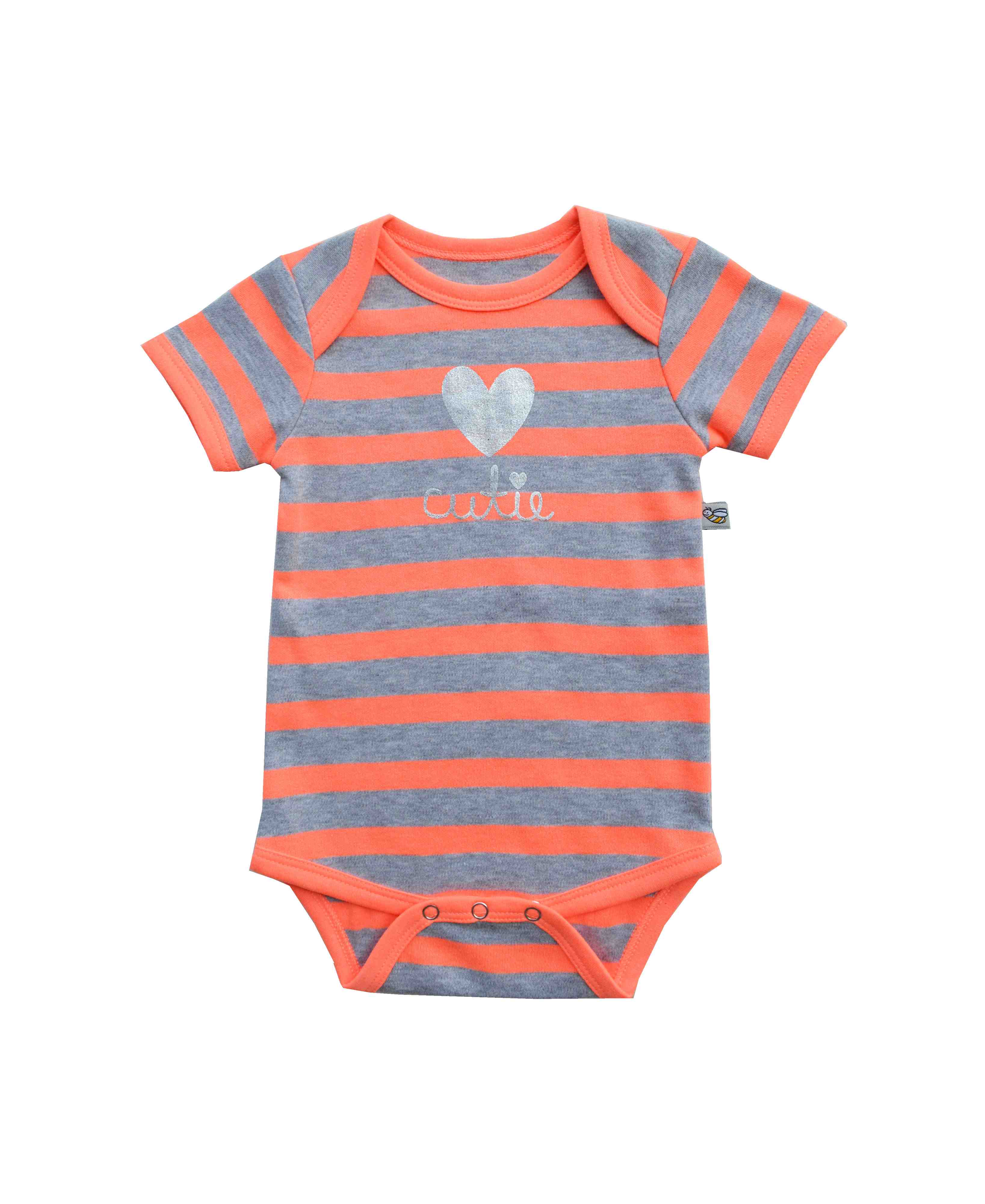 Cutie Print On Orange Stipes Baby Romper/Onesie