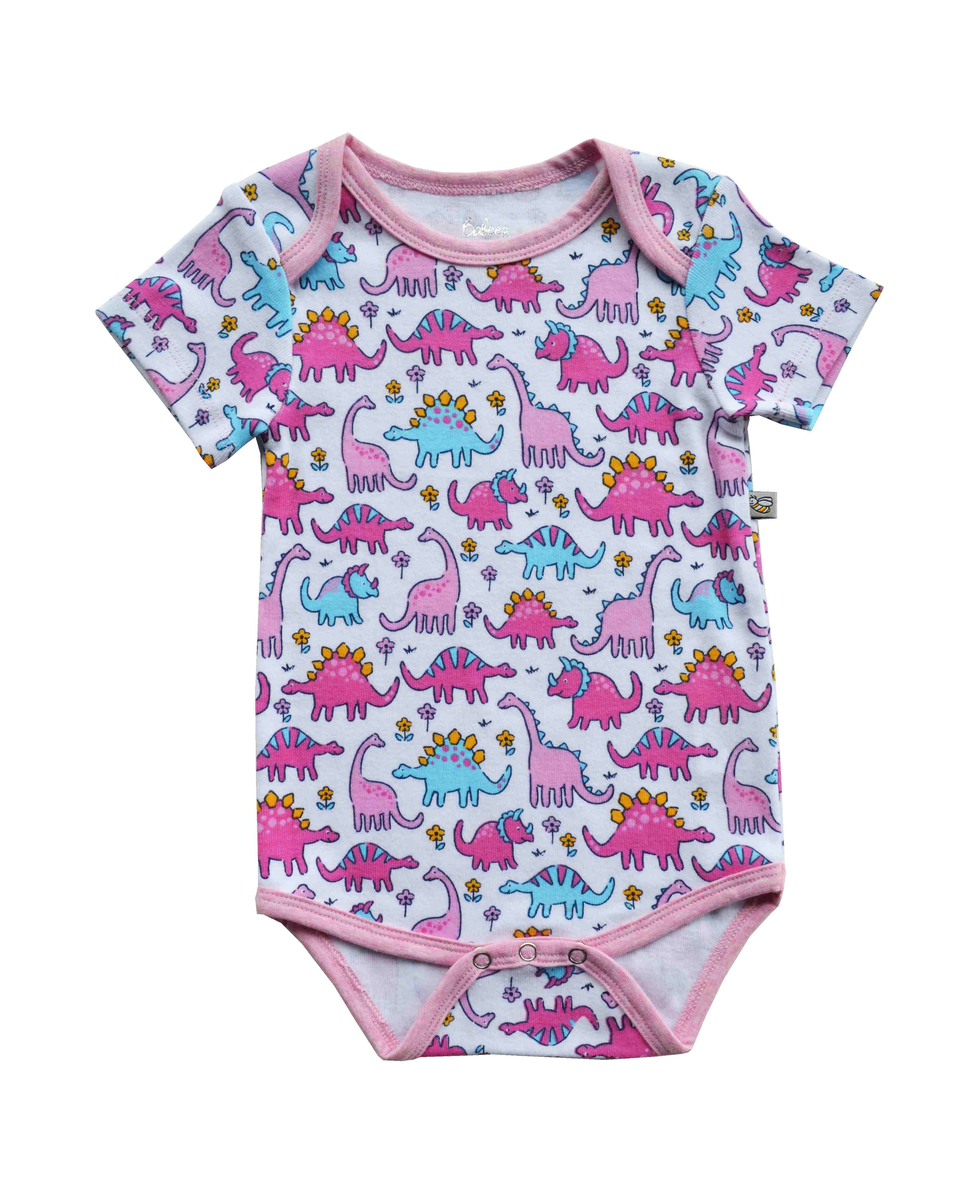 Dinosaur Print On Pink Baby Romper/Onesie(100% Cotton)