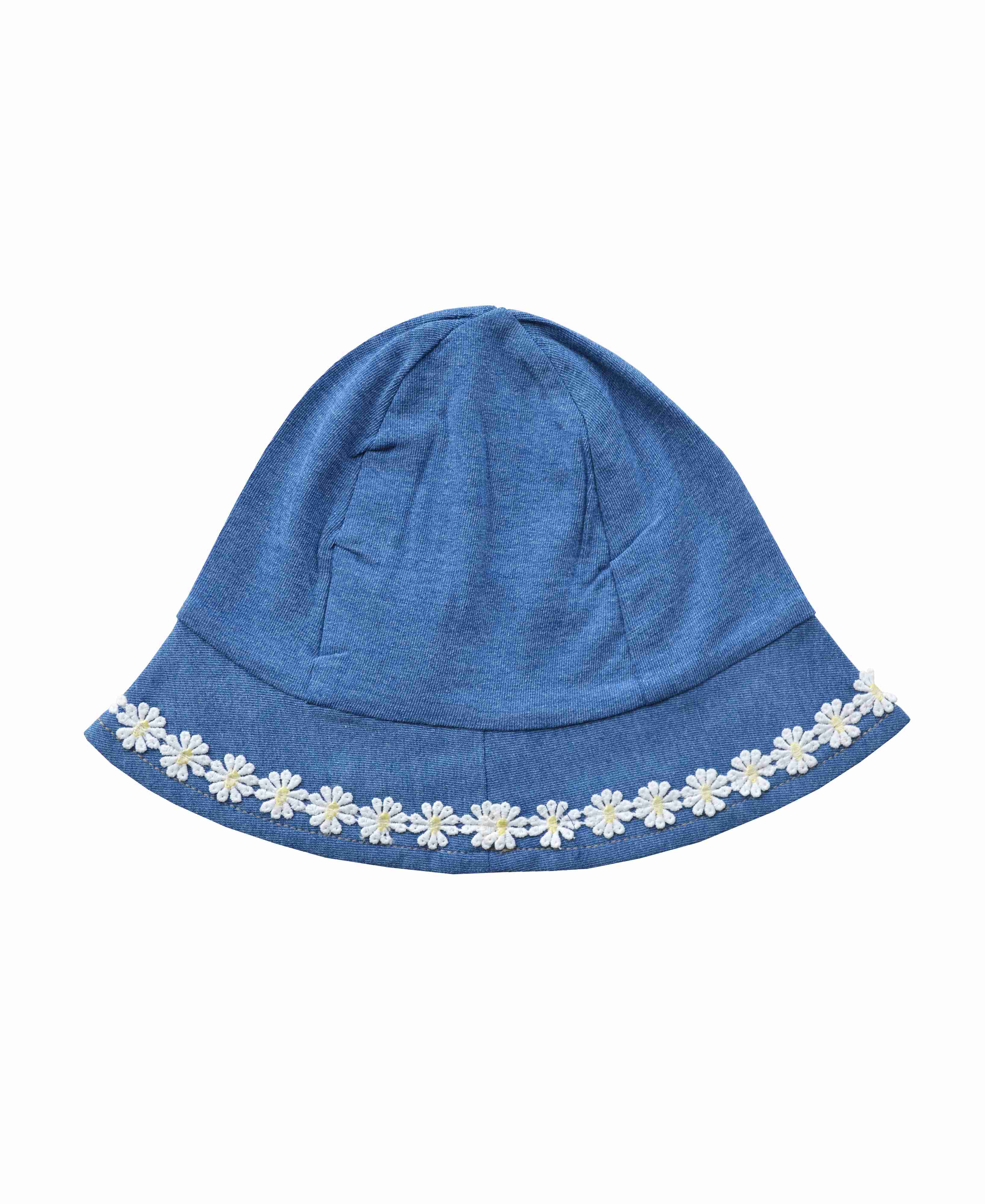 Girls Denim Sunhat with White Flower Embroidery