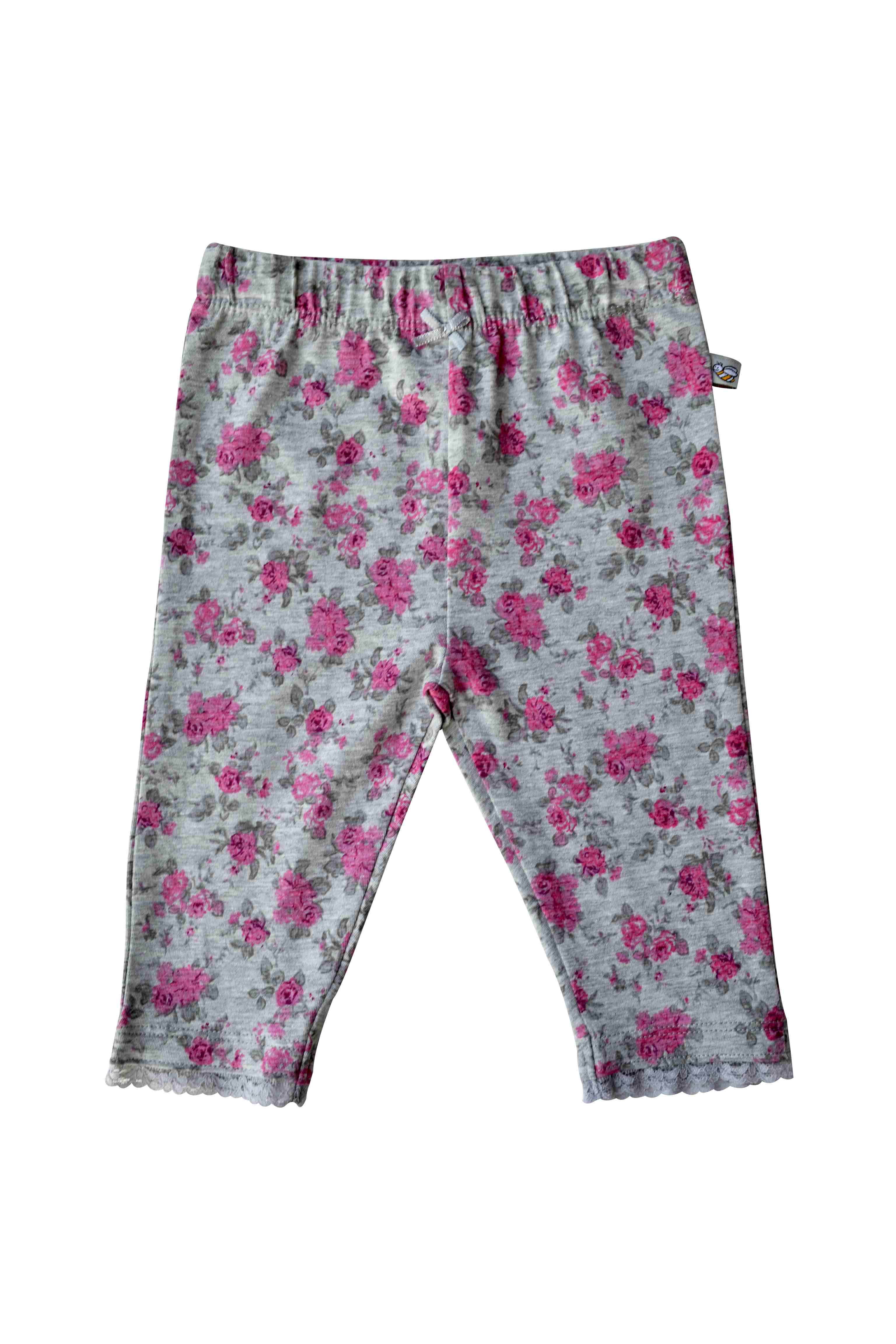 Girls Grey Melange Leggings with Pink Roses (95% Cotton 5%Elasthan Jersey)