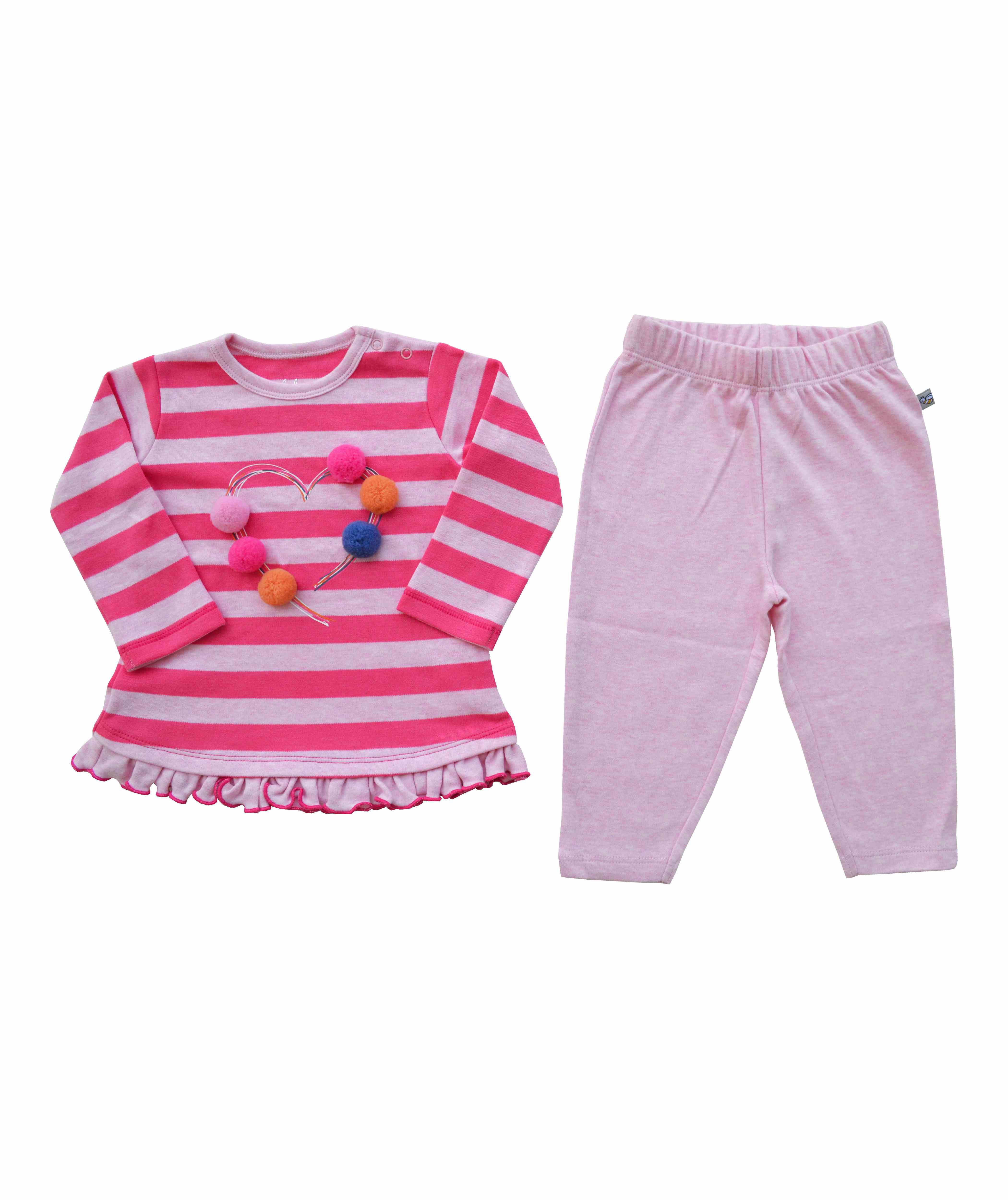 Pink Striped Full Sleeves Top + Lt. Pink Legging Set (100% Cotton Interlock Biowash)