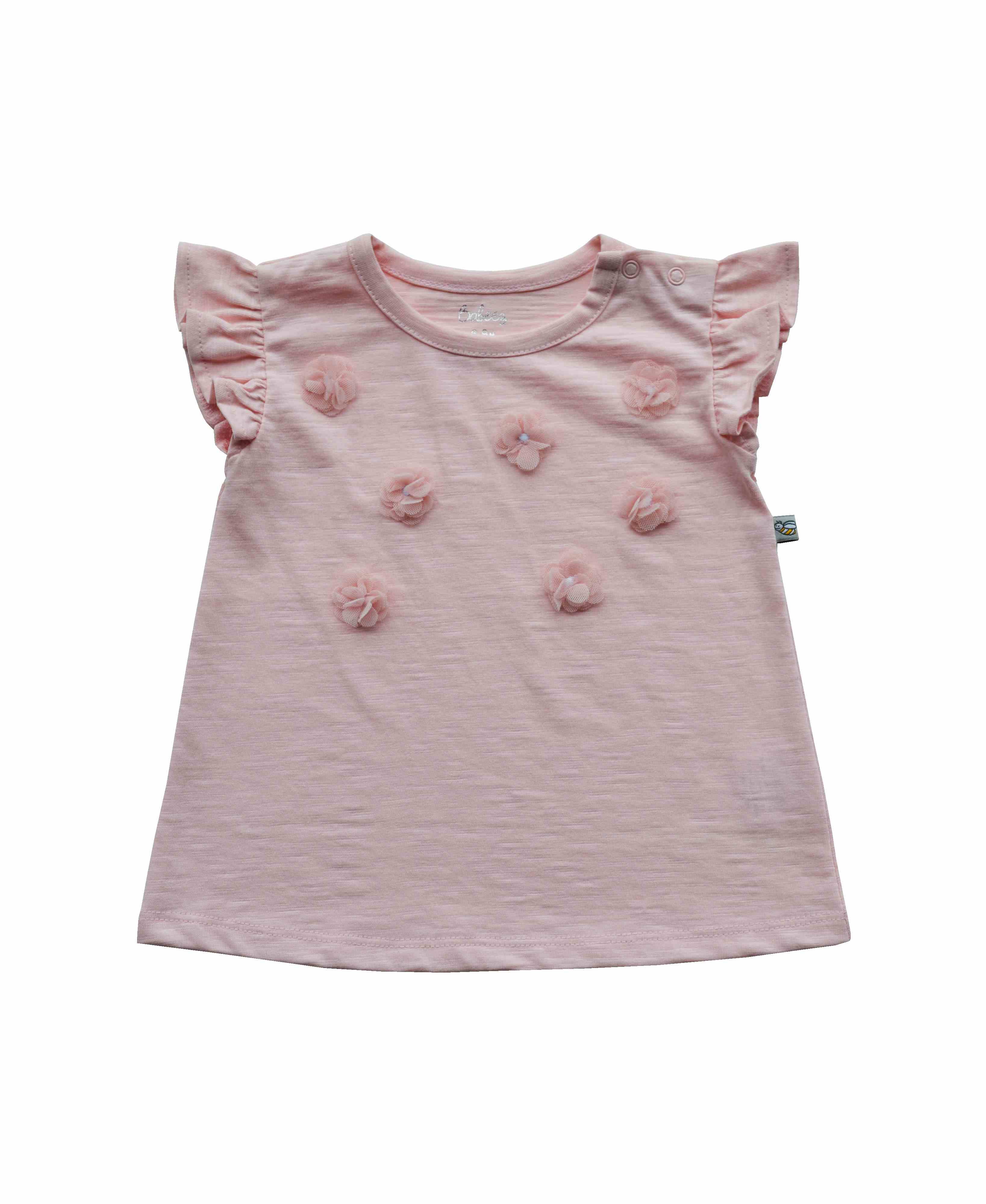 Girls Pink Top with Flower Applique (Slub Jersey)