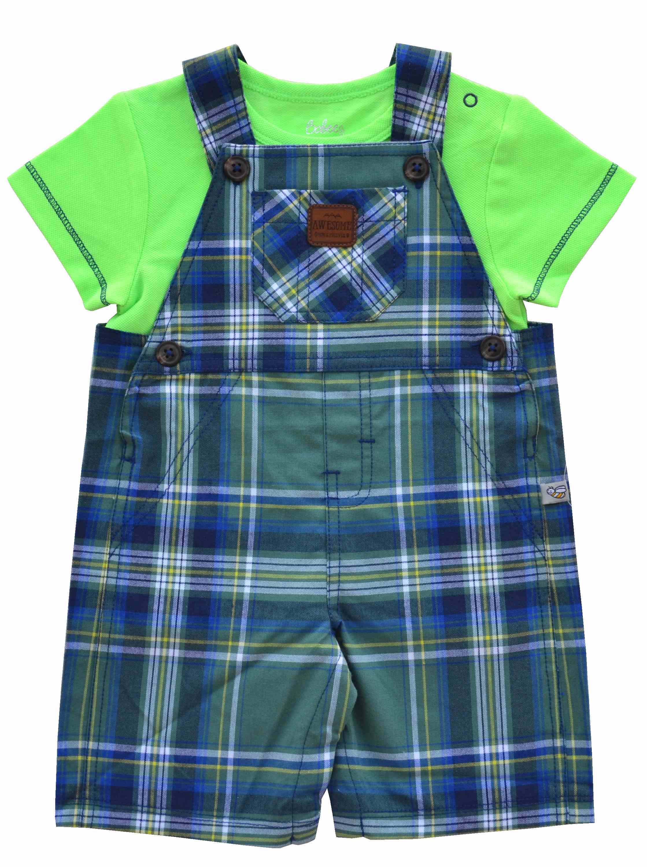Green T-Shirt With Checks Short Romper Set