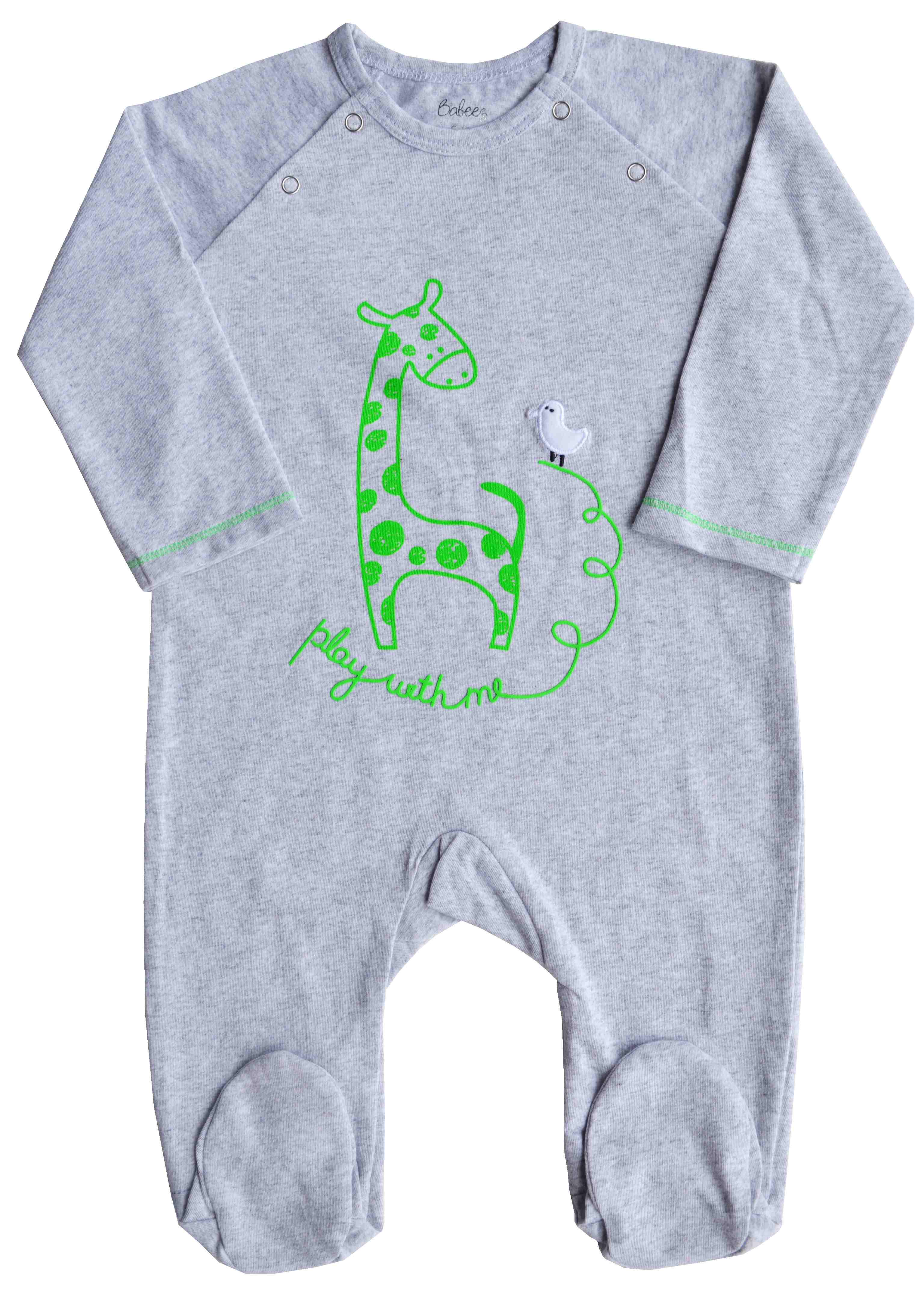 Grey Mel. Full Sleeper with Feet
