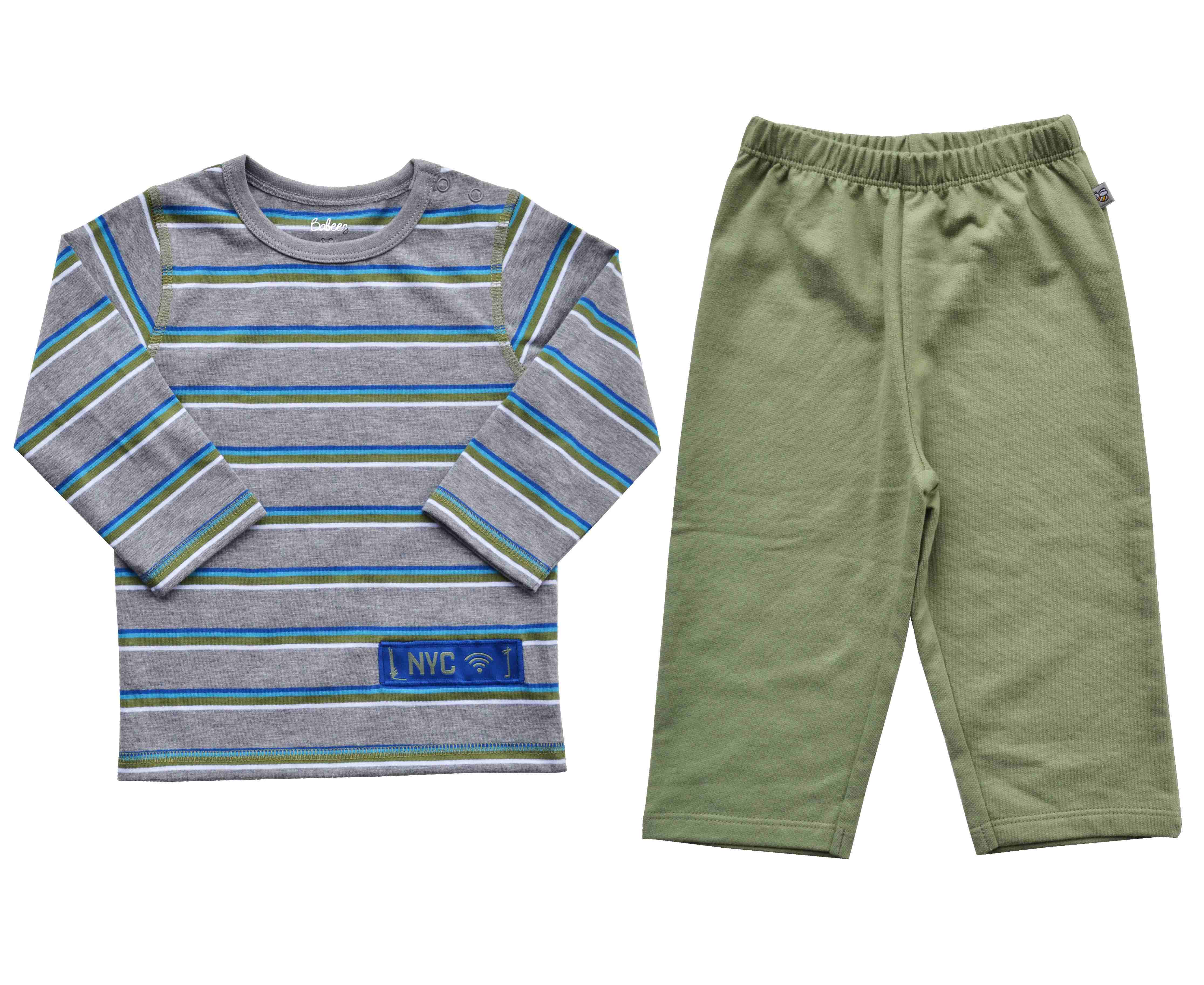Baby Boy's T-Shirt+ Pant Set,Color-Grey Blue/Green