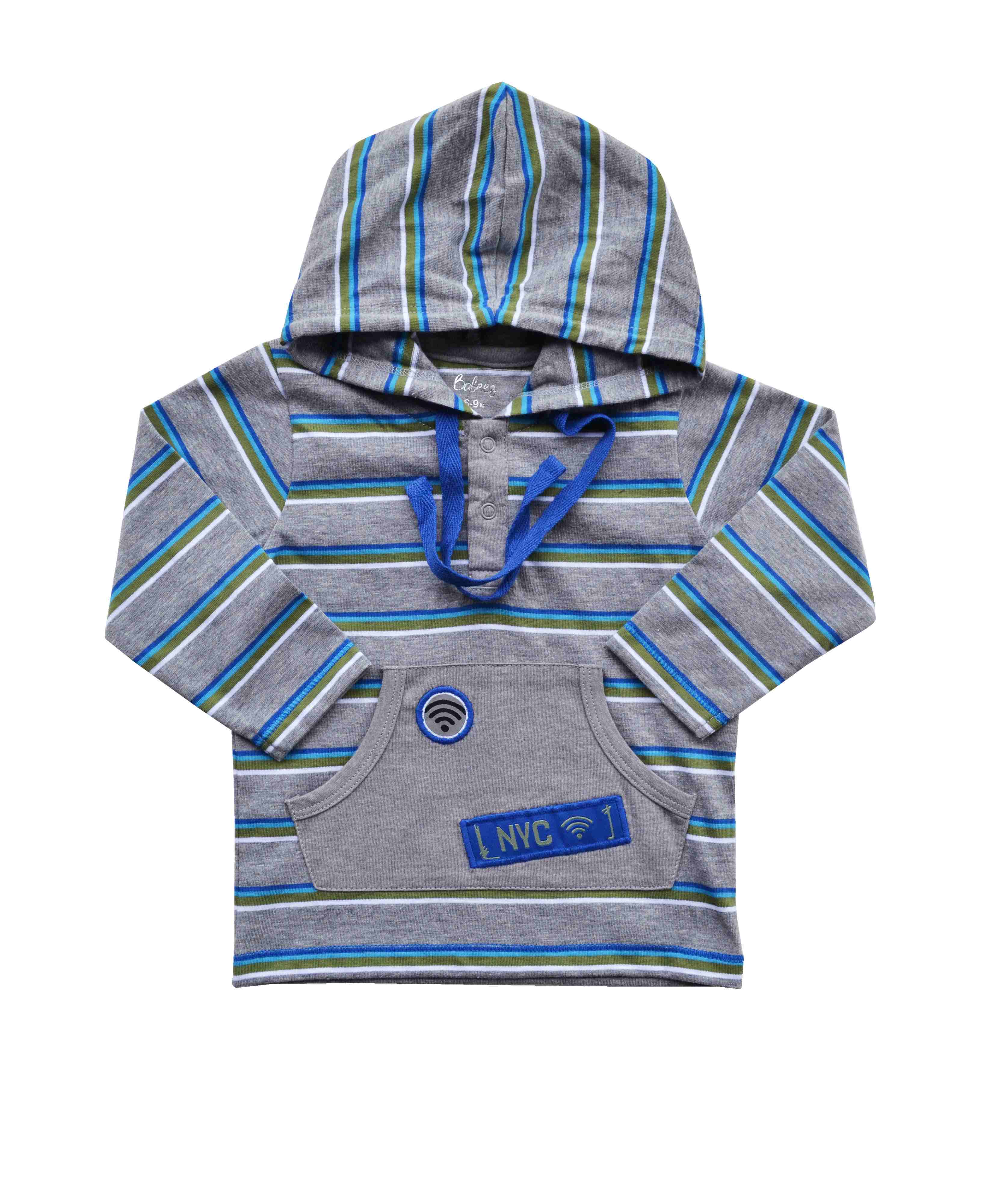 Baby Boys T-Shirt with Hood,Color-Grey/Blue