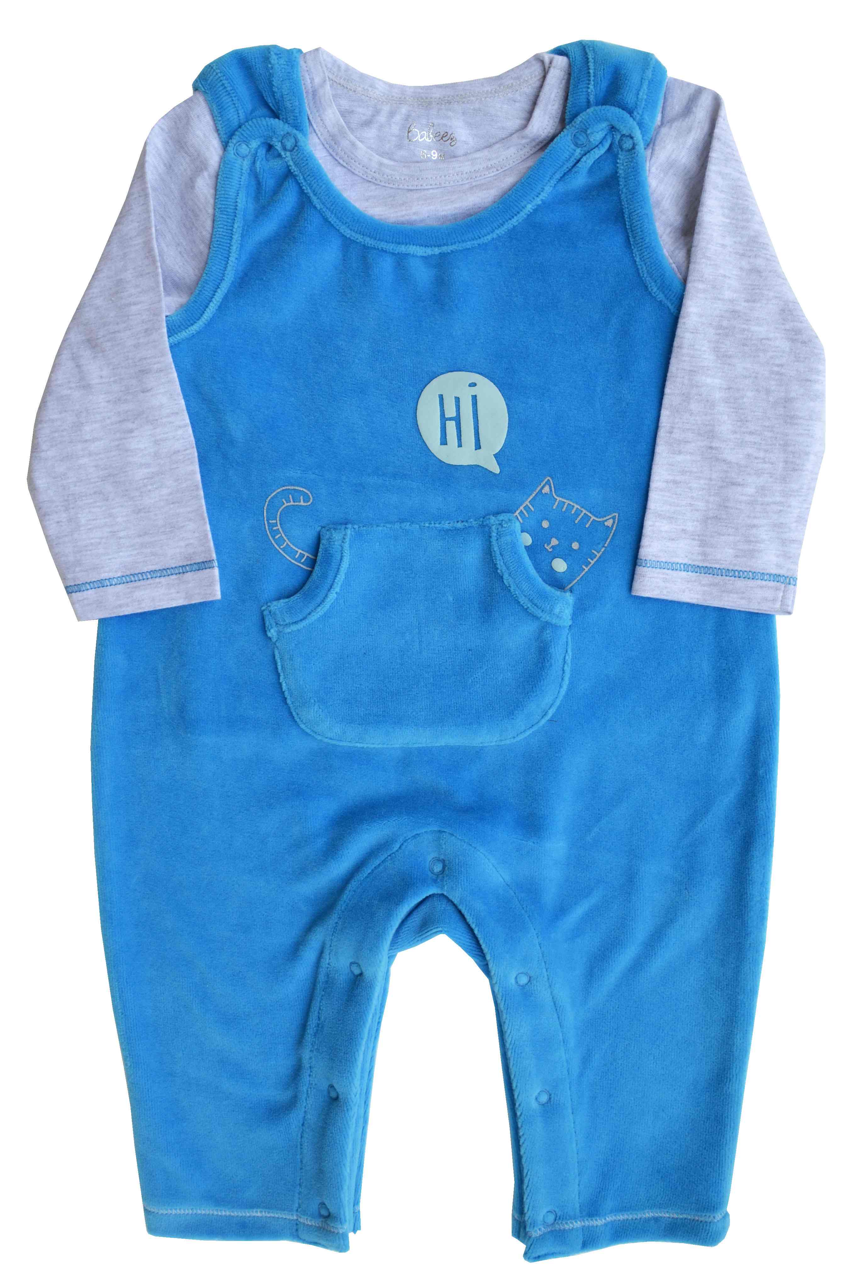 Baby Romper Set with Grey Full Sleeves T-Shirt,Color-Blue