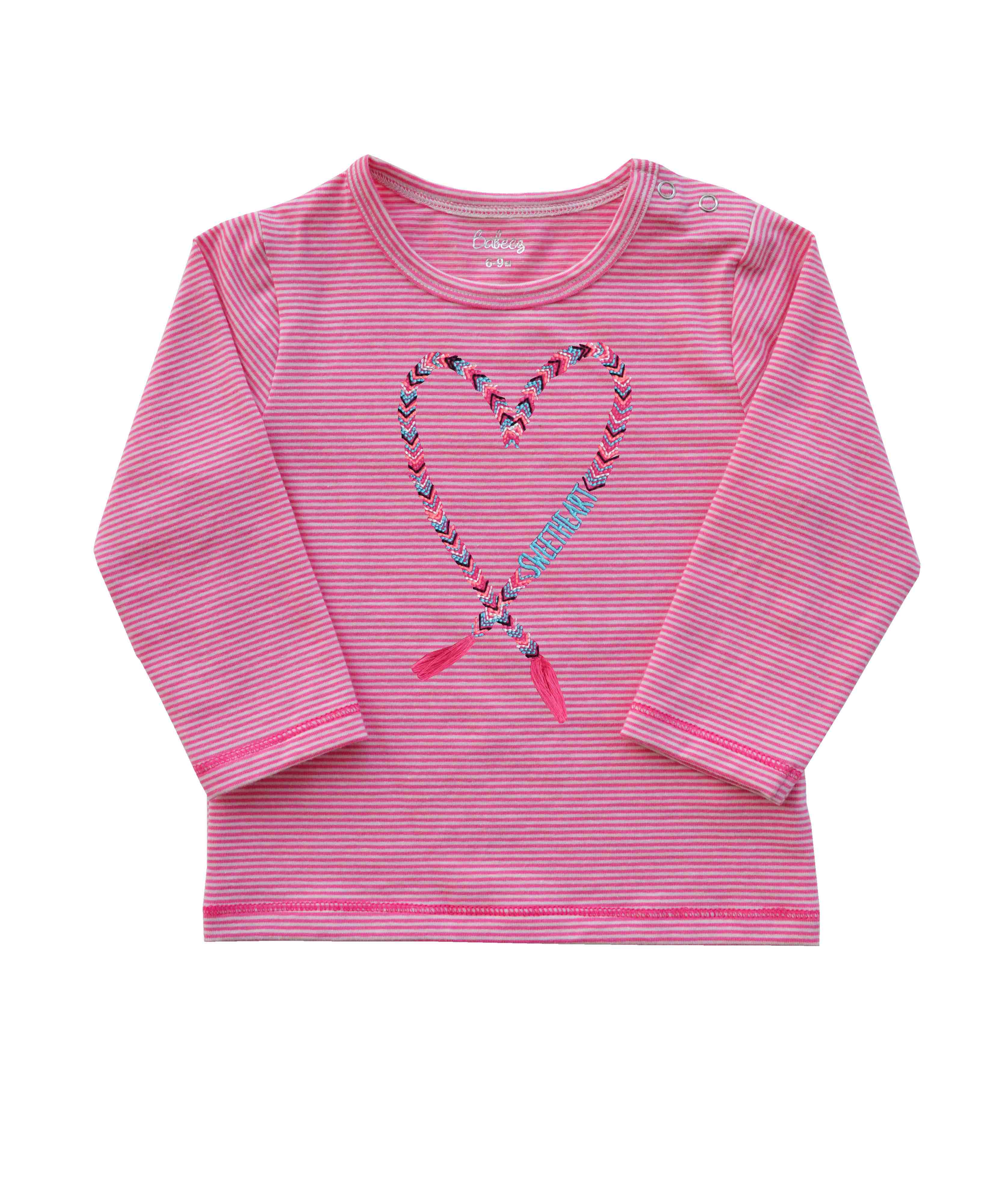 Heart Embroidery on Pink Stripes Long sleeve Top
