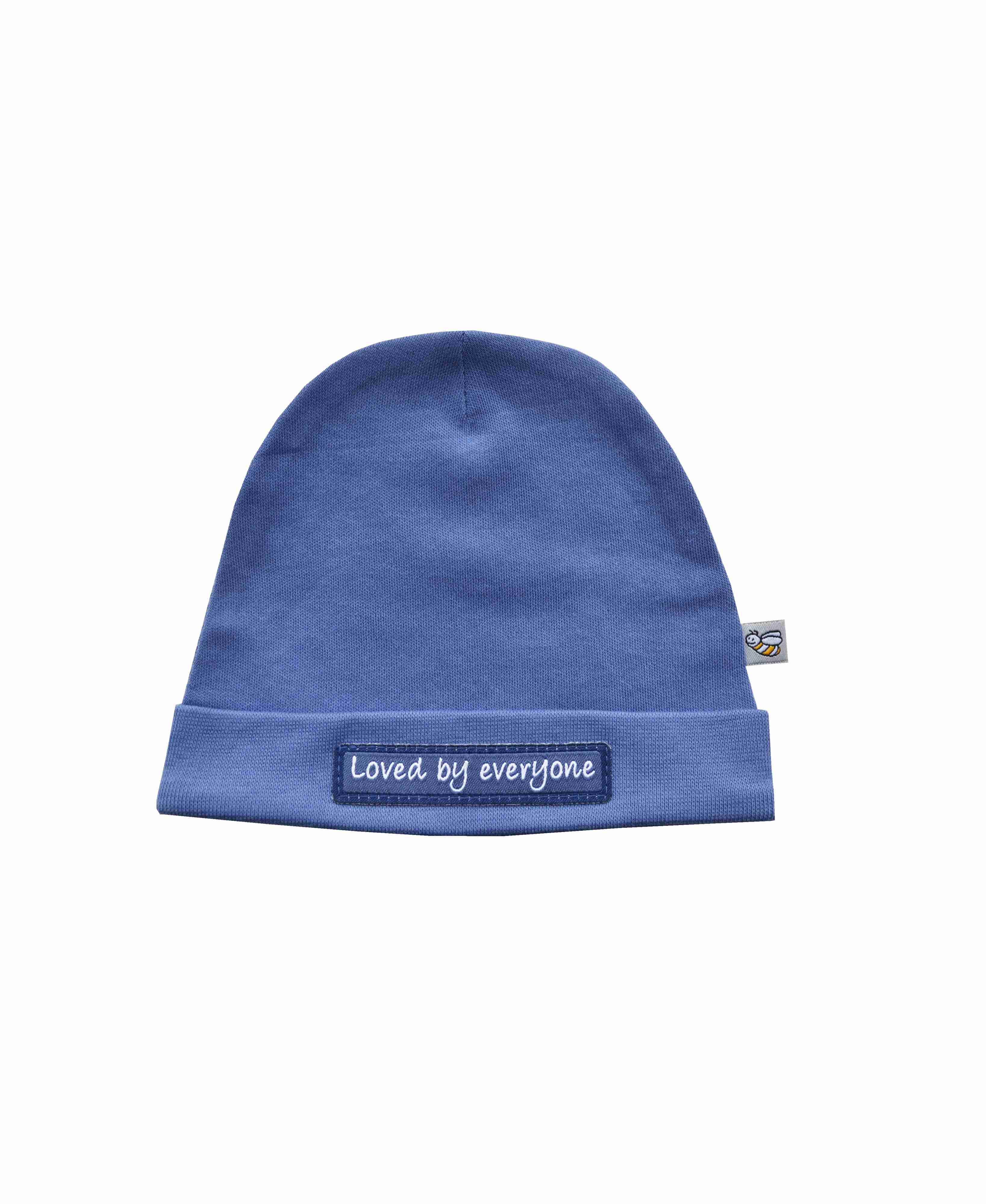 Loved By Everyone Print On Indigo Blue Beanie Cap (100% Cotton Interlock Biowash)