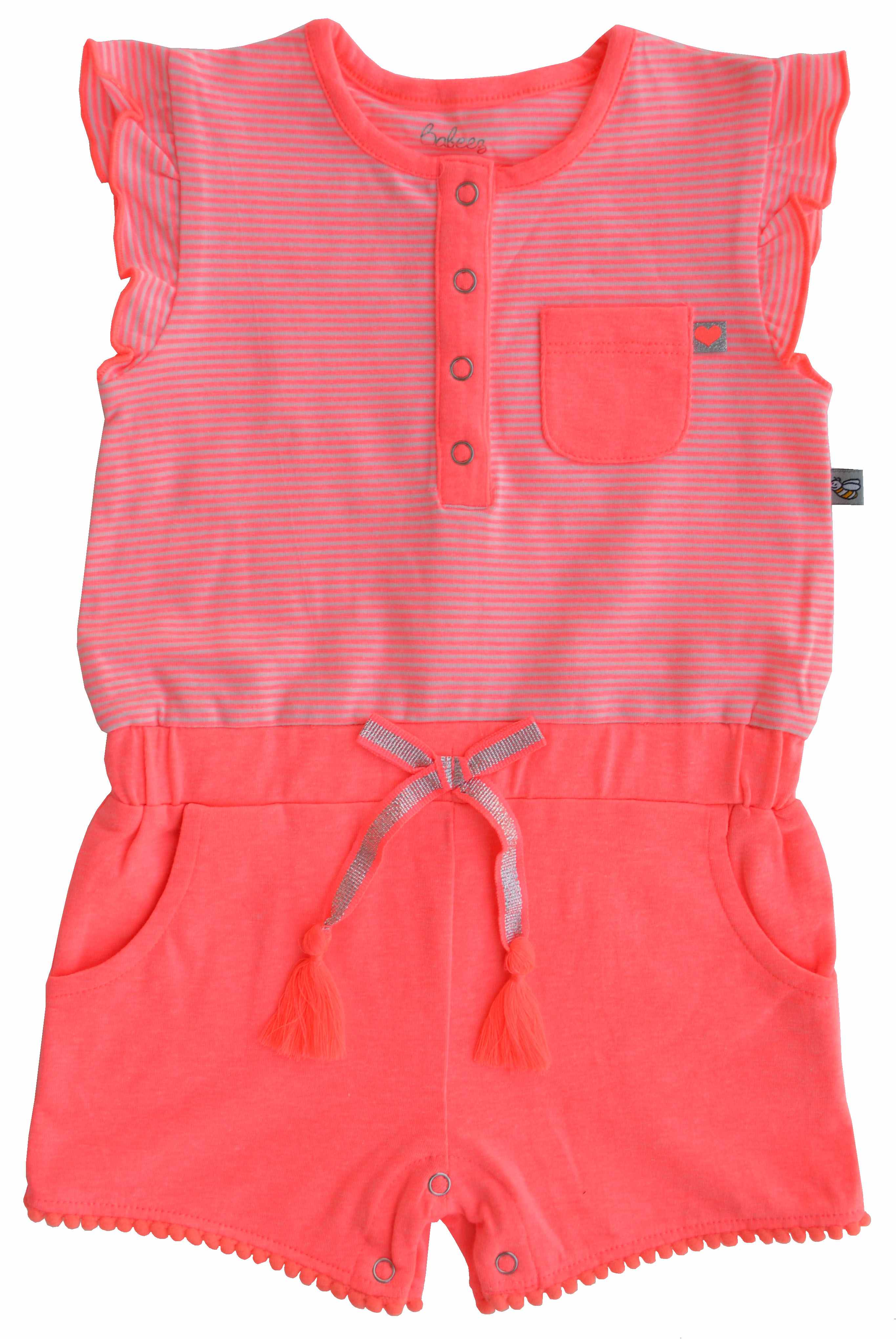 Baby Girls Short Romper,Color-Orange Stripes