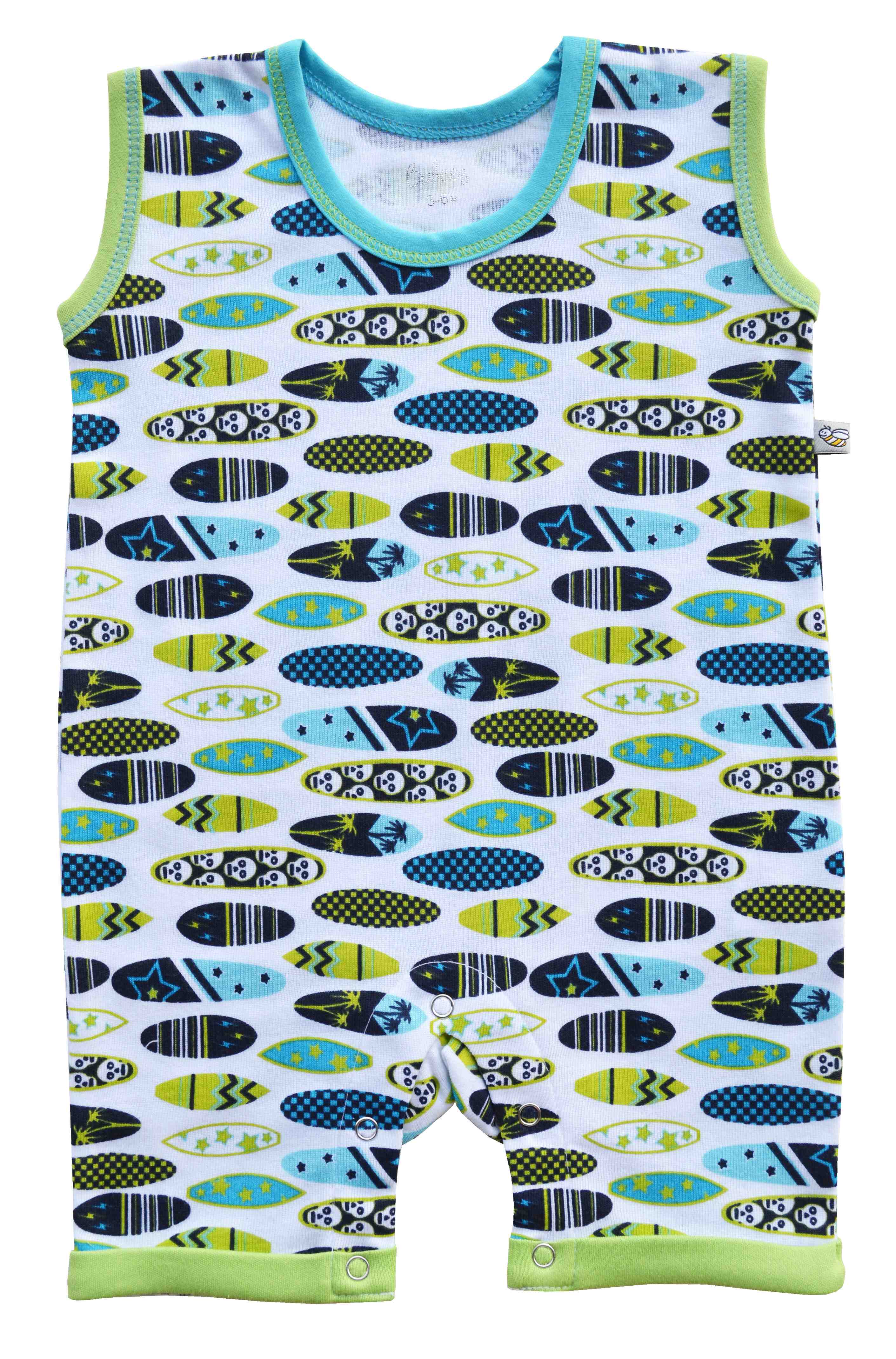 Baby's Sleeveless Short Romper,Color-Green/Blue