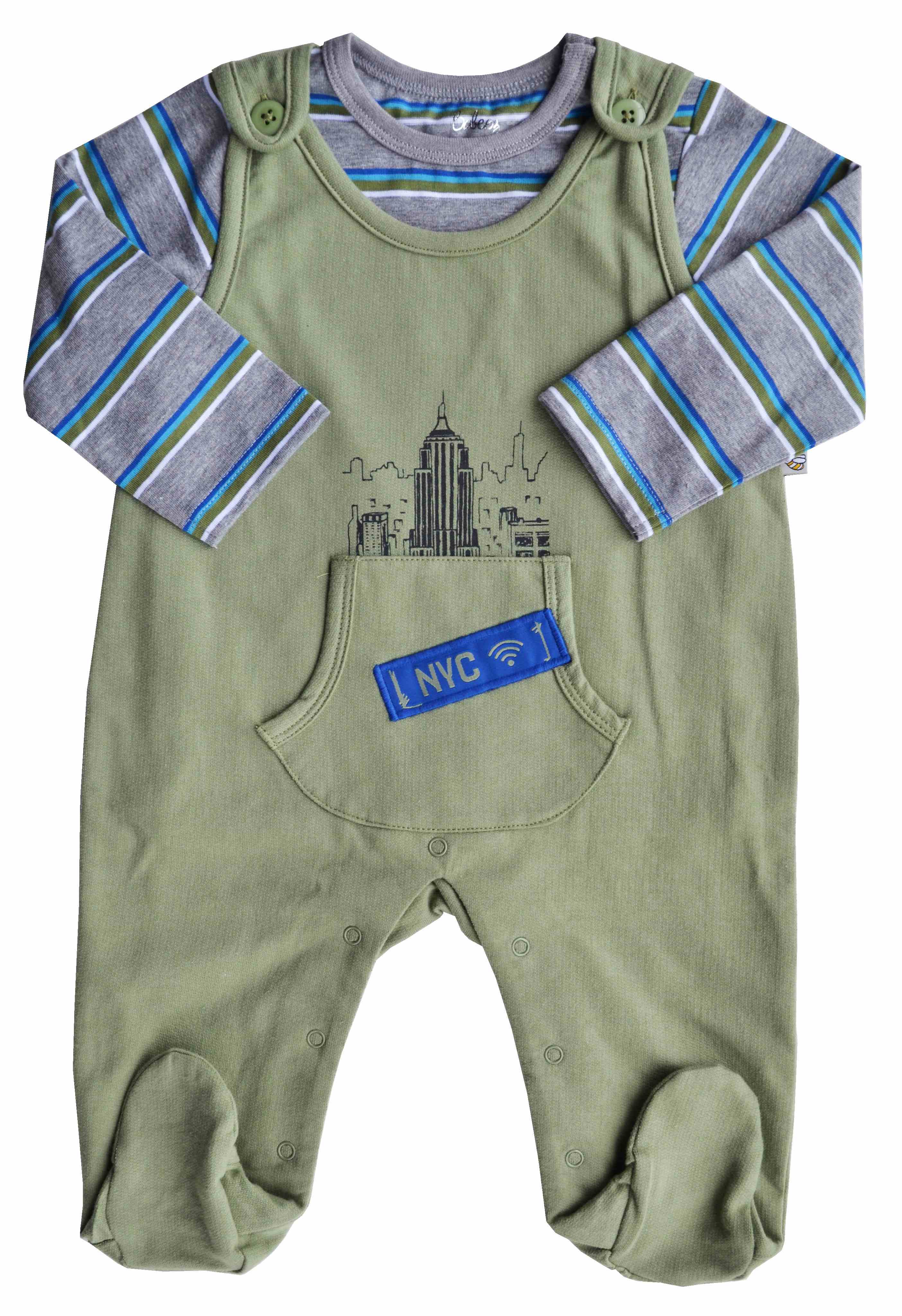 Stripe T-Shirt With Green Long Romper Set