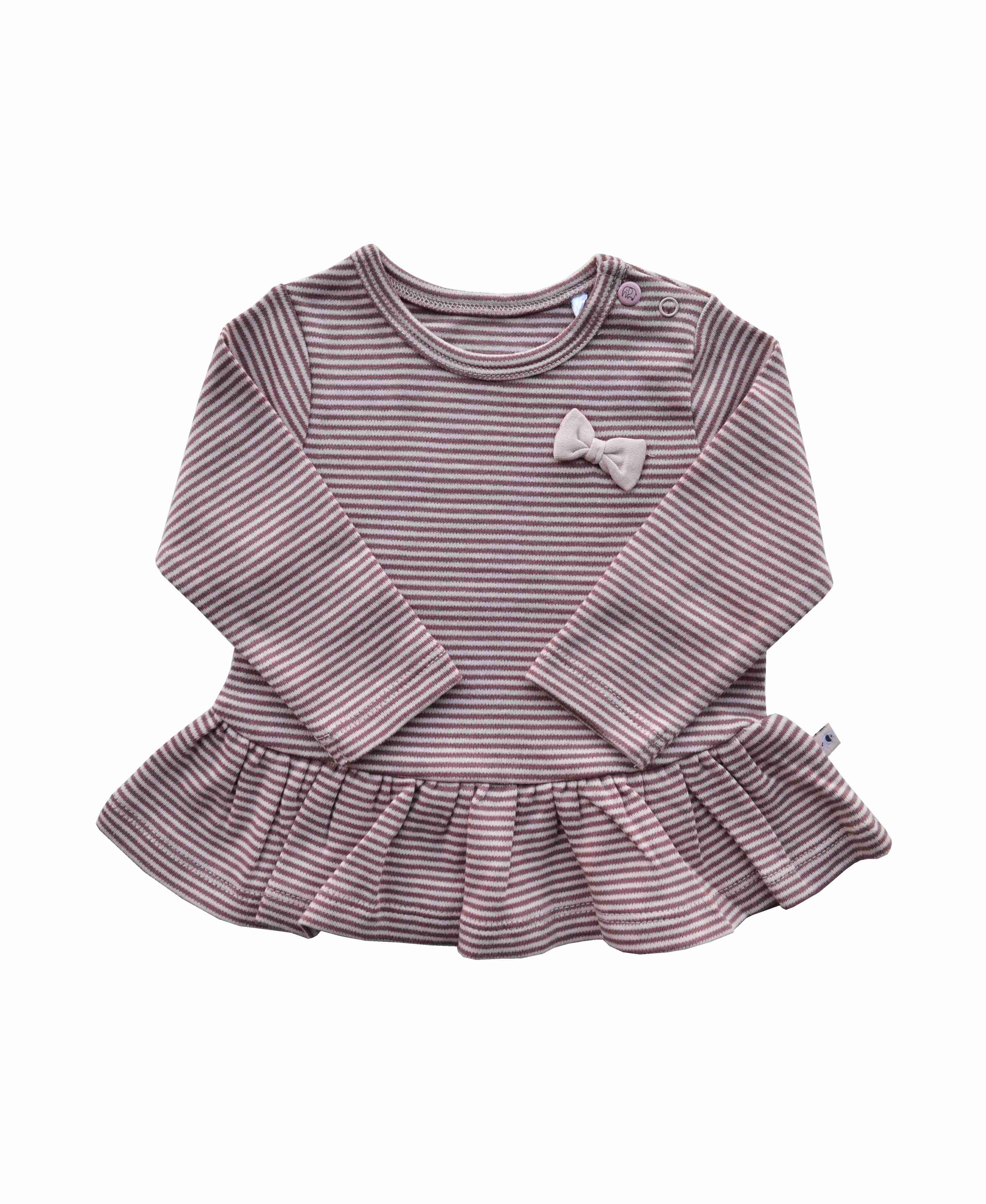 Striped Dress with Pink Bow (100% Cotton Interlock Biowash)