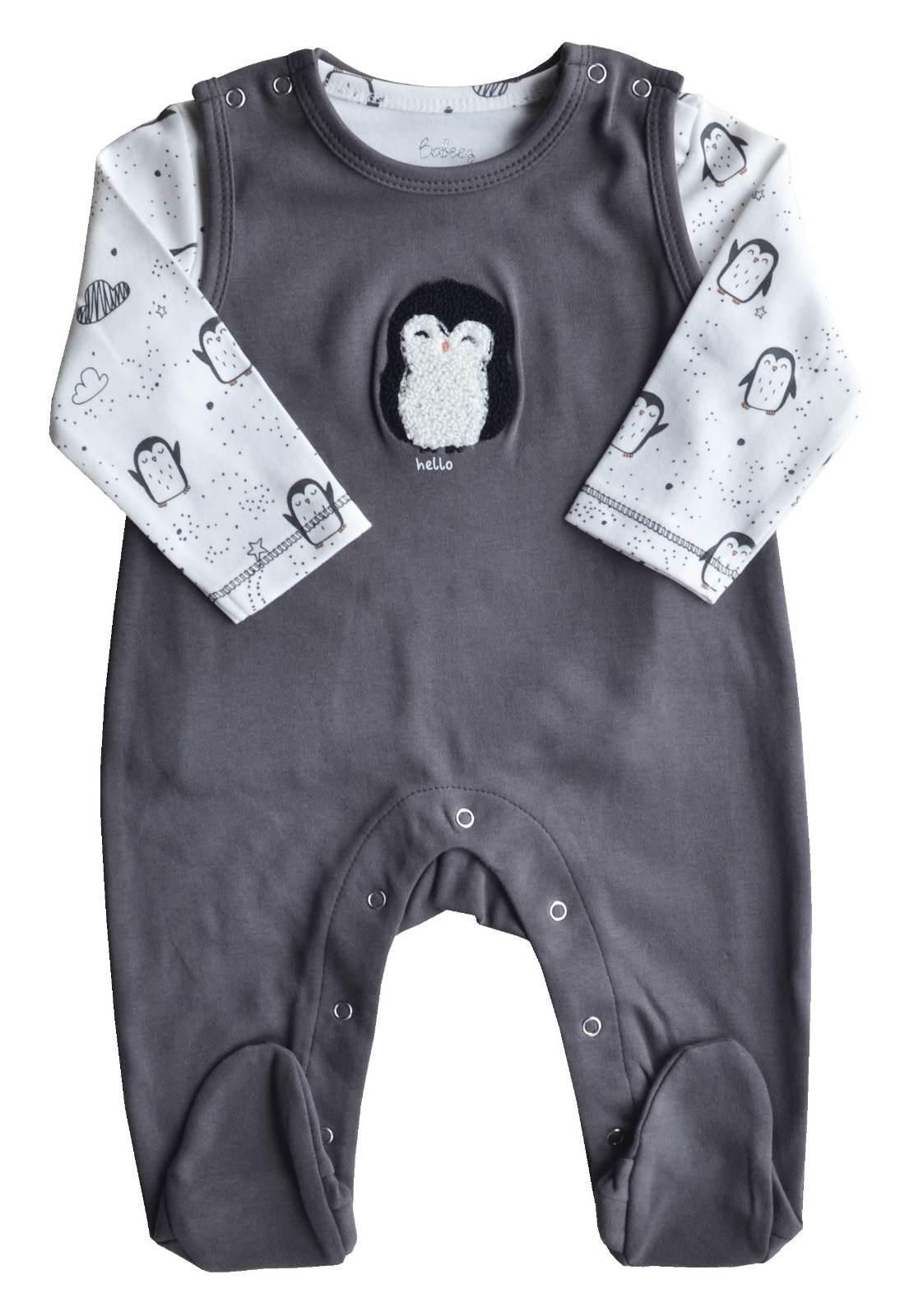 Baby's Long Romper set with T-Shirt & Feet,Color-Grey/White
