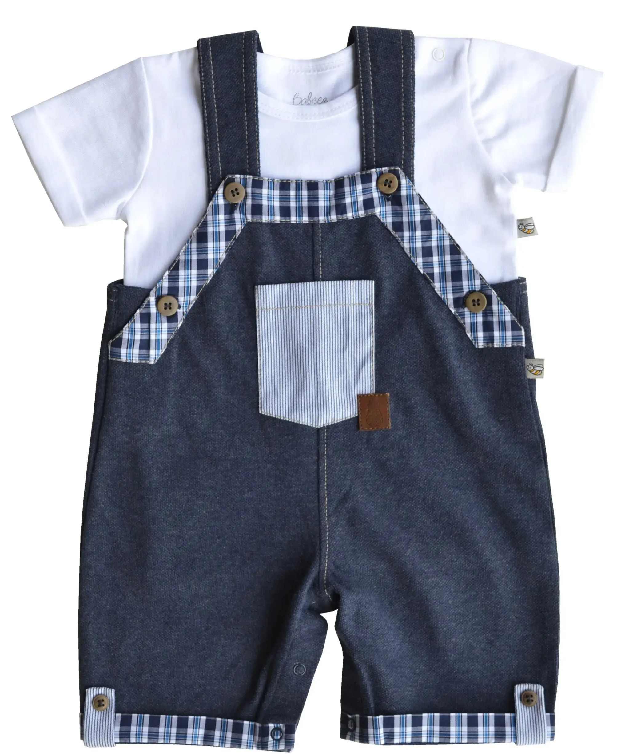 Baby Boys Romper Set with T-Shirt,Color-Blue/White
