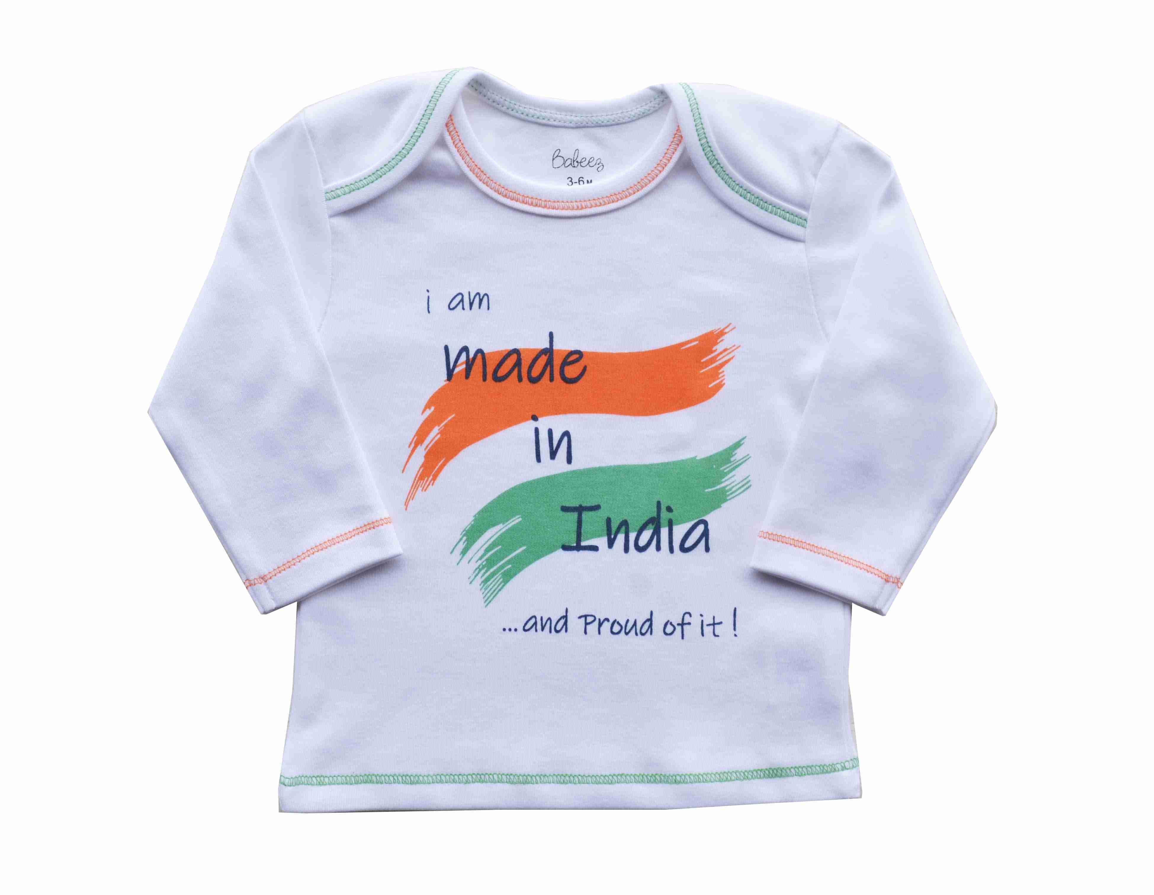 Baby's T-Shirt with Full sleeves,Color-White/Tricolor