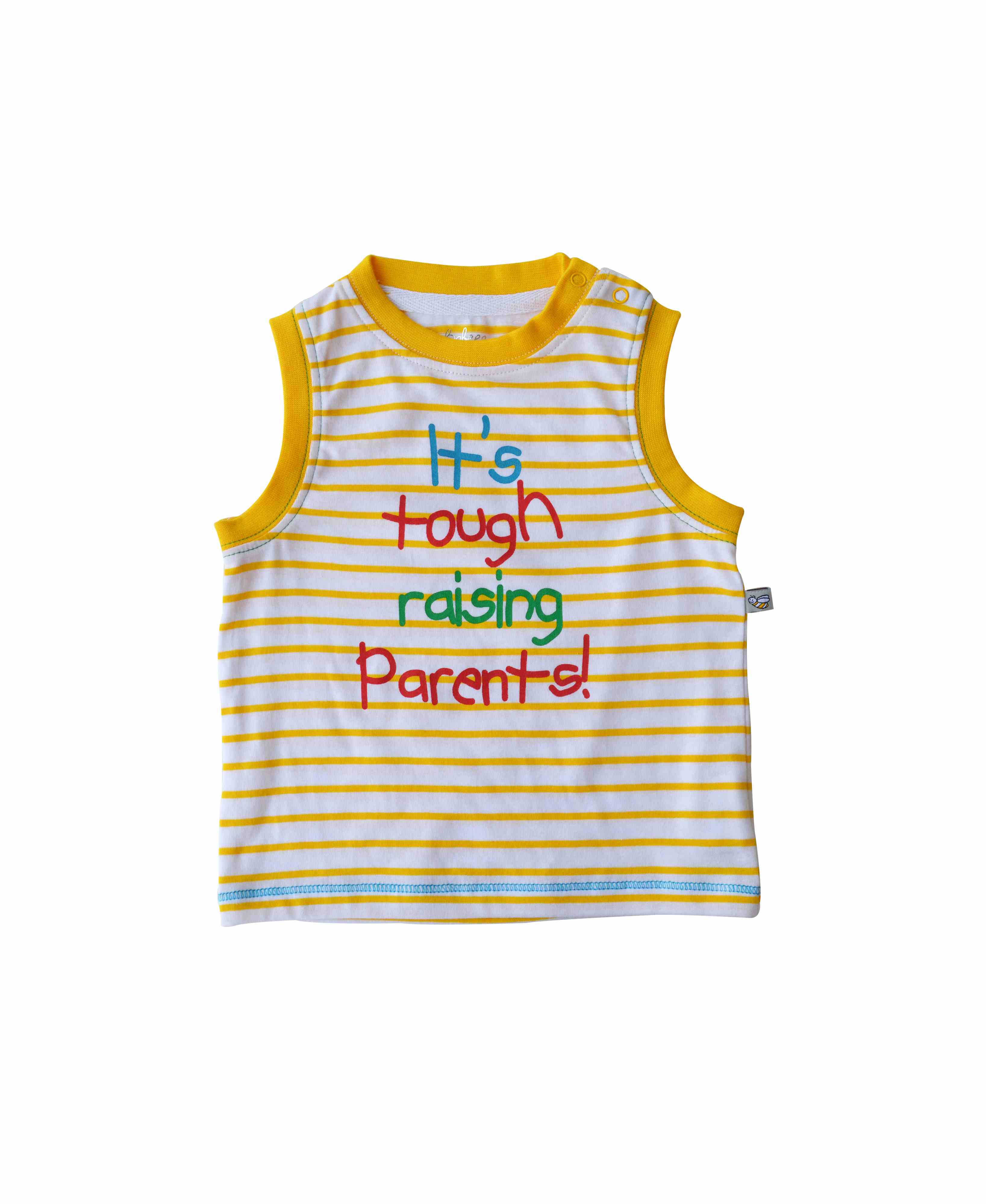 White/Yellow stripes Vest with Chest Print