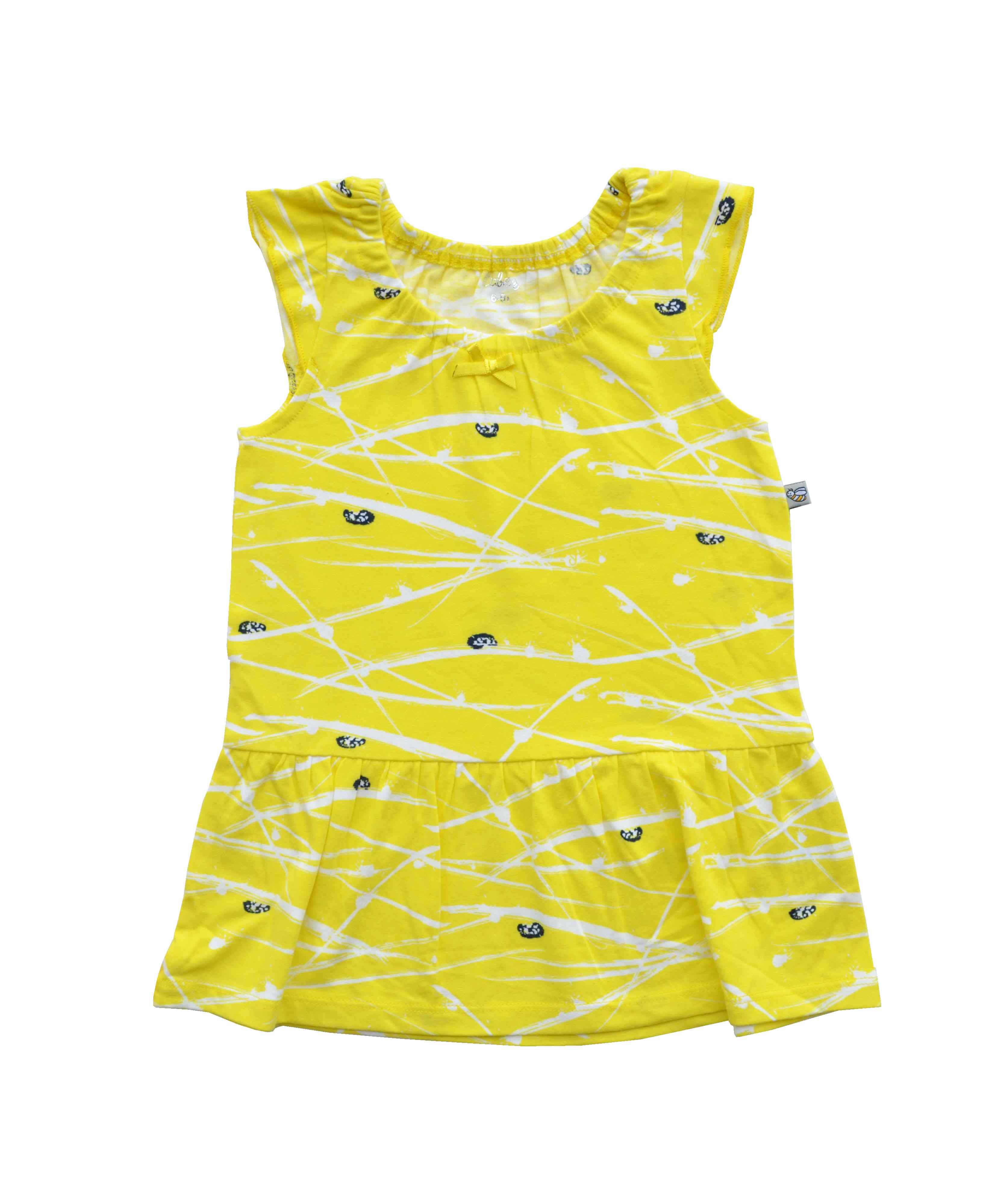Yellow Bugs Print on Sleeveless Dress (50% Cotton 46% Lyocell 4% Elasthane)