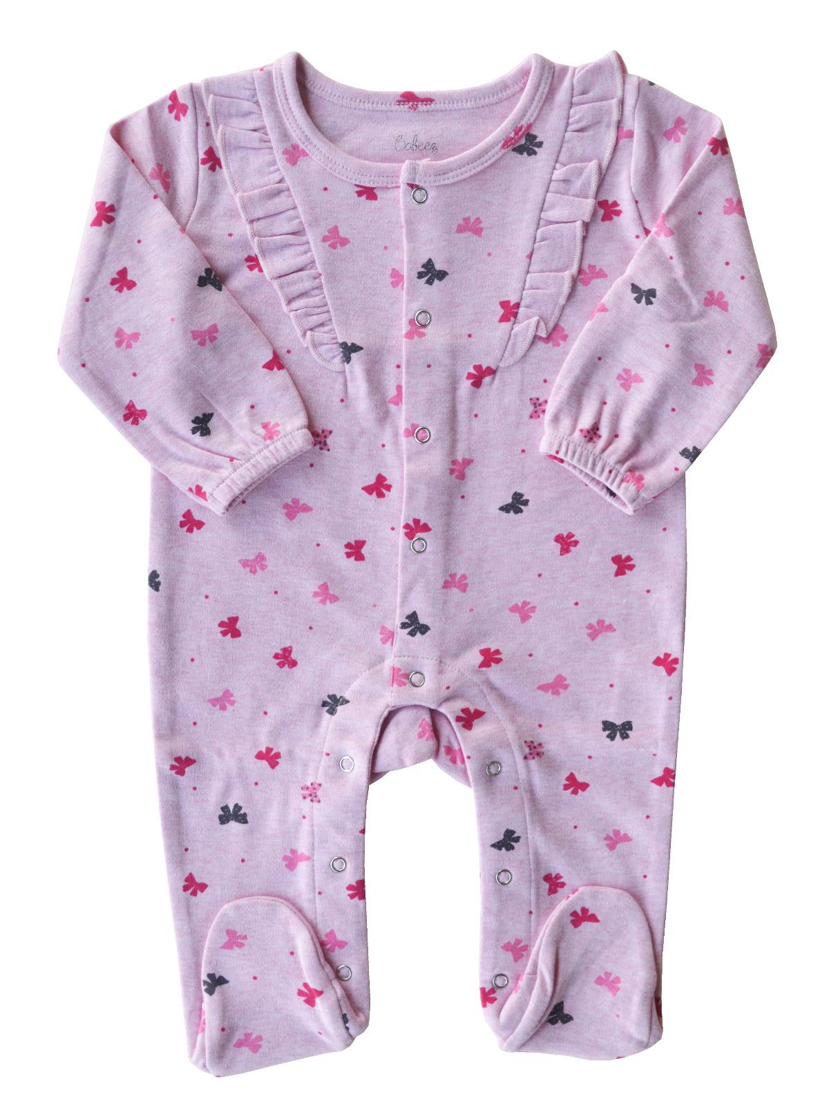 Baby's Full Romper/Sleeper with feet,Color-Pink Melange